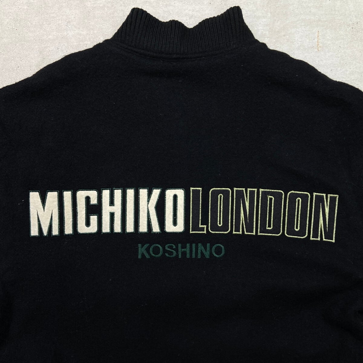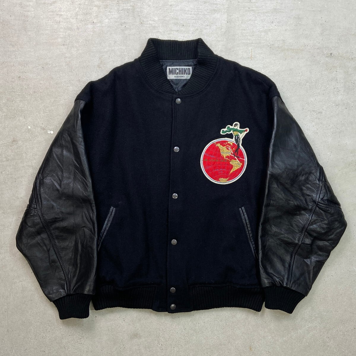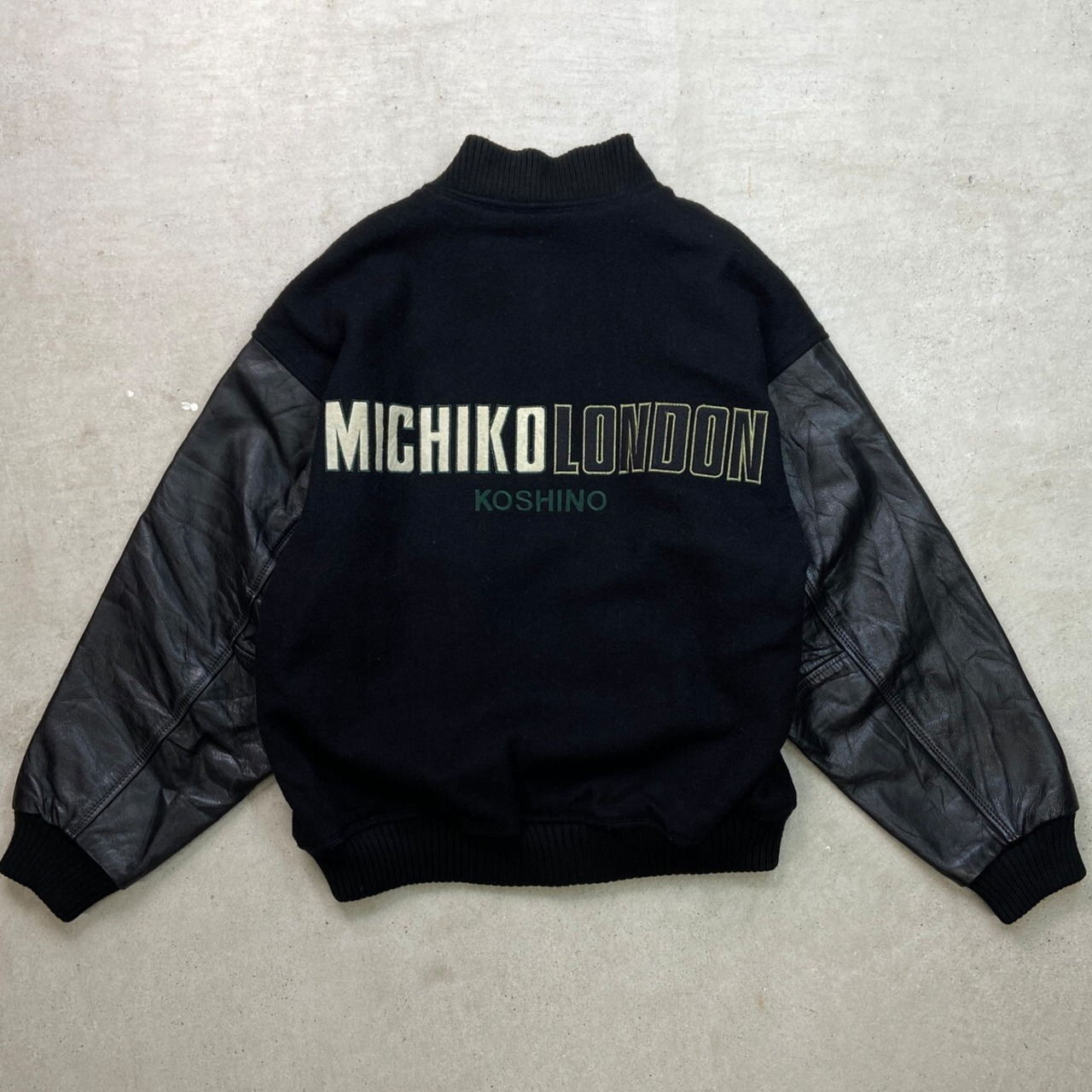 80年代 MICHIKO LONDON KOSHINO ミチコロンドン 袖革 ウールスタジャン メンズXL相当 古着 80s VINTAGE ヴィンテージ 袖レザー コシノミチコ 黒【ブルゾン・ジャケット】/ブラック