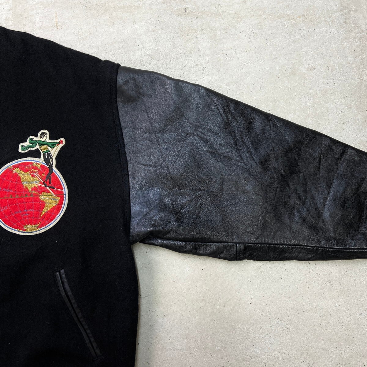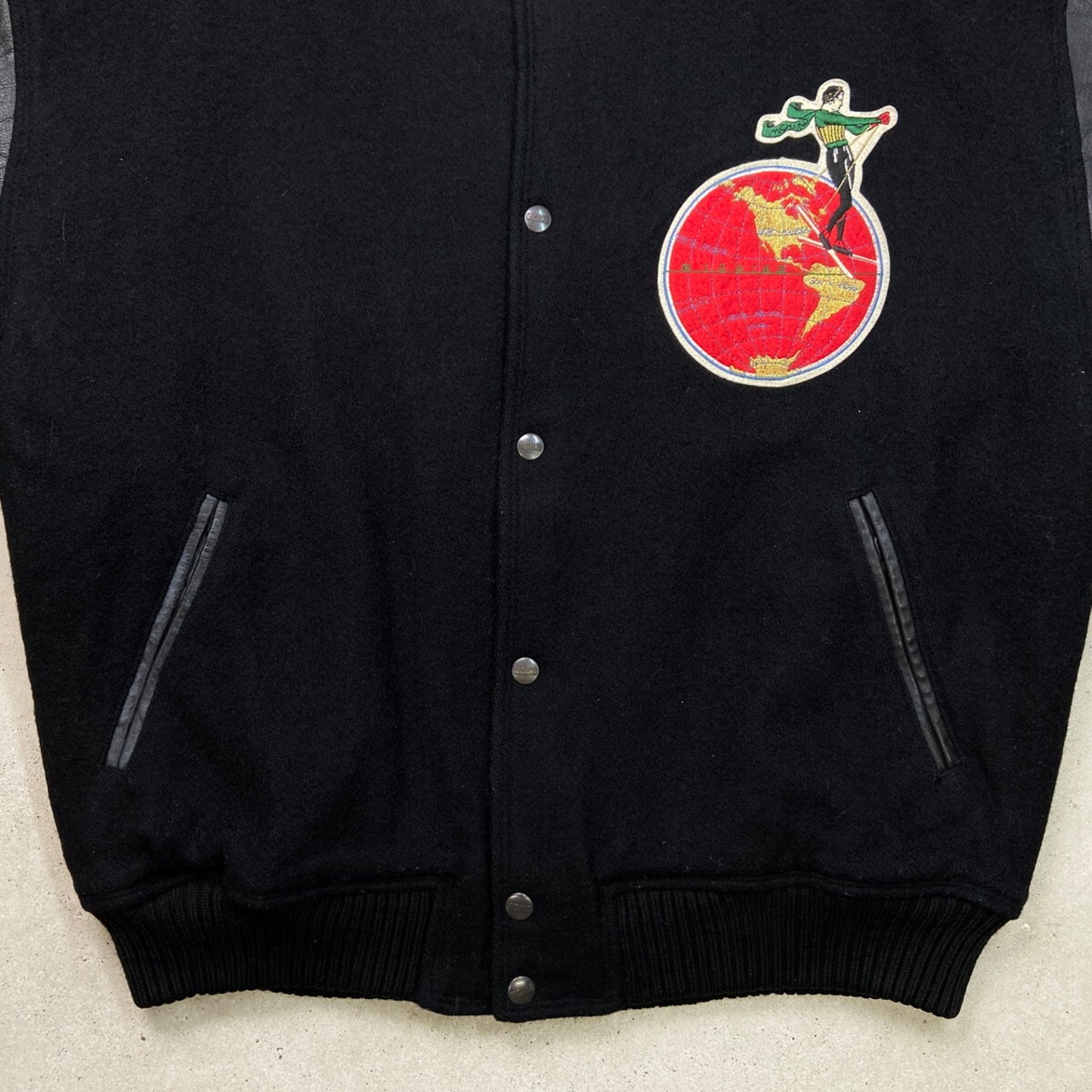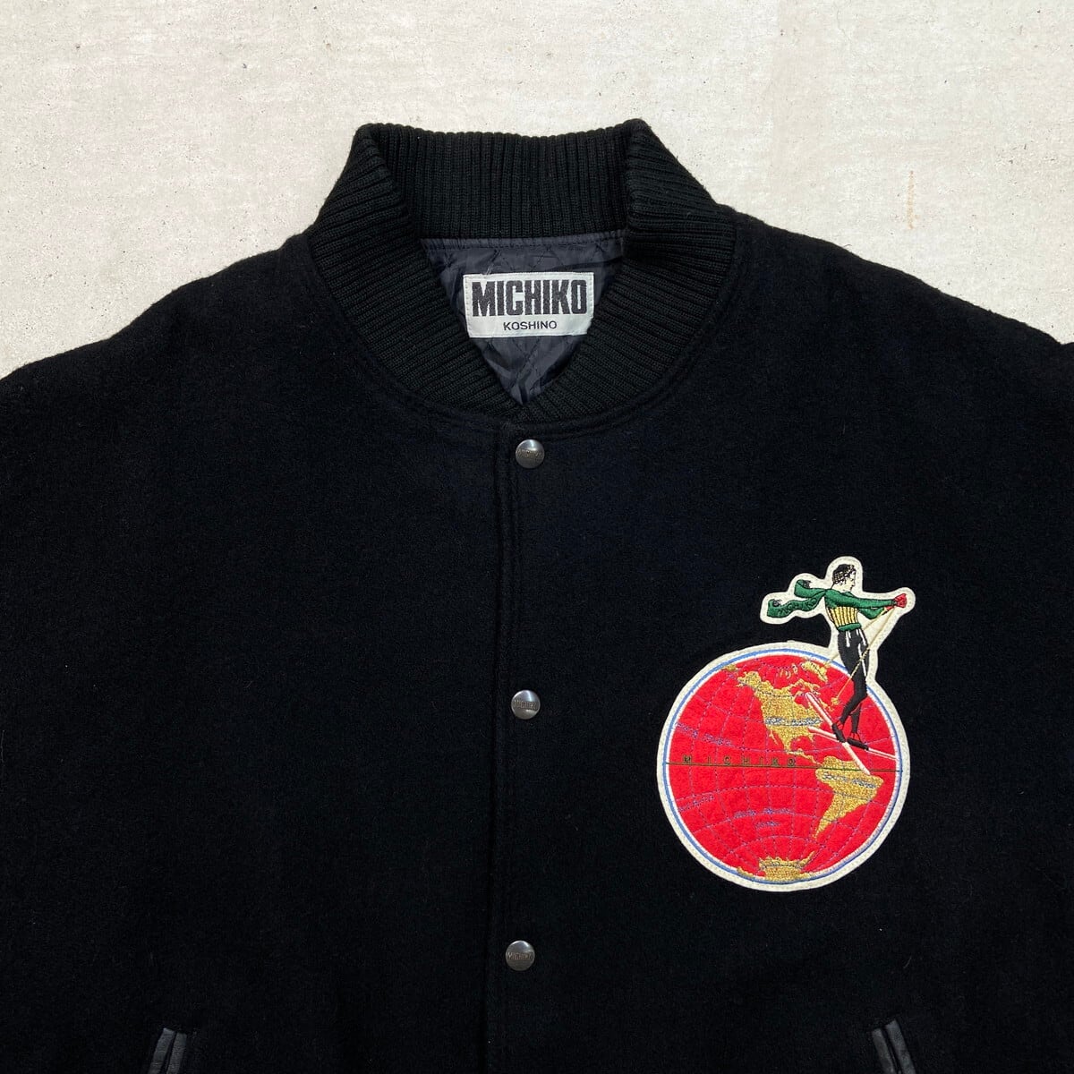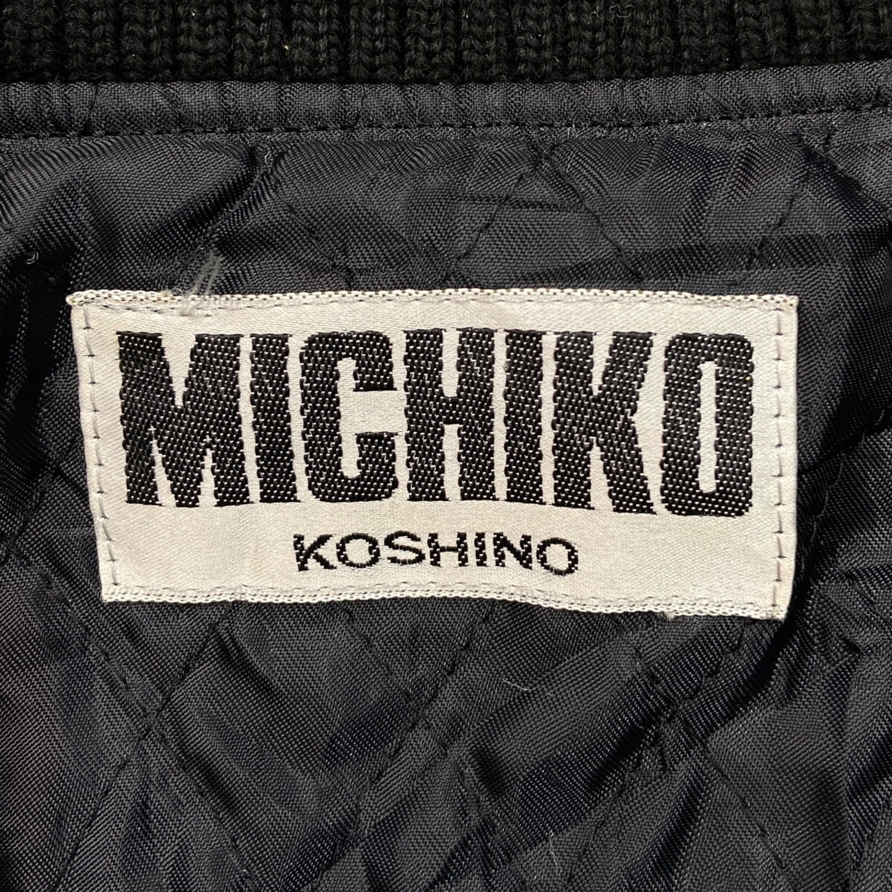 80年代 MICHIKO LONDON KOSHINO ミチコロンドン 袖革 ウールスタジャン メンズXL相当 古着 80s VINTAGE ヴィンテージ 袖レザー コシノミチコ 黒【ブルゾン・ジャケット】/ブラック