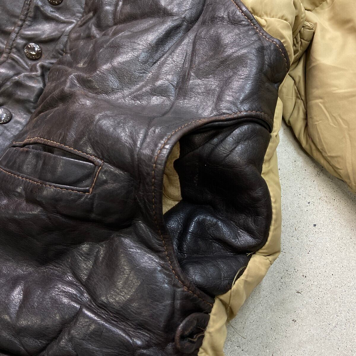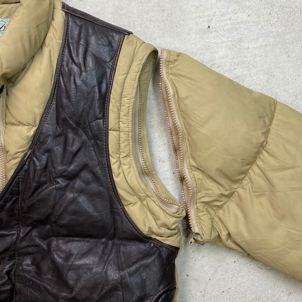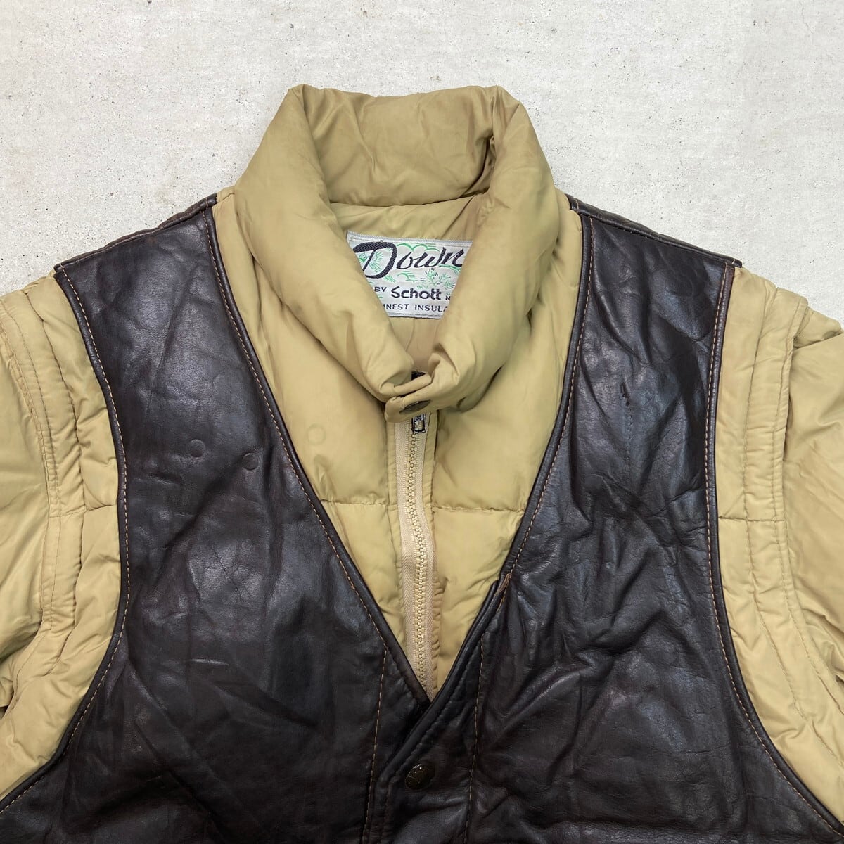 80年代 USA製 Schott ショット 2WAY レザーグースダウンジャケット メンズM相当 古着 80s VINTAGE ヴィンテージ ダウンベスト【ブルゾン・ジャケット】/ベージュ