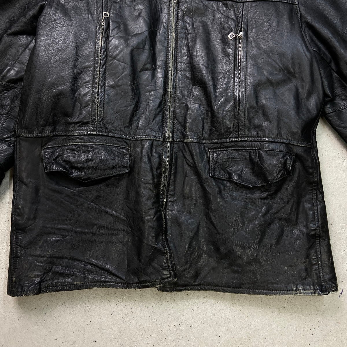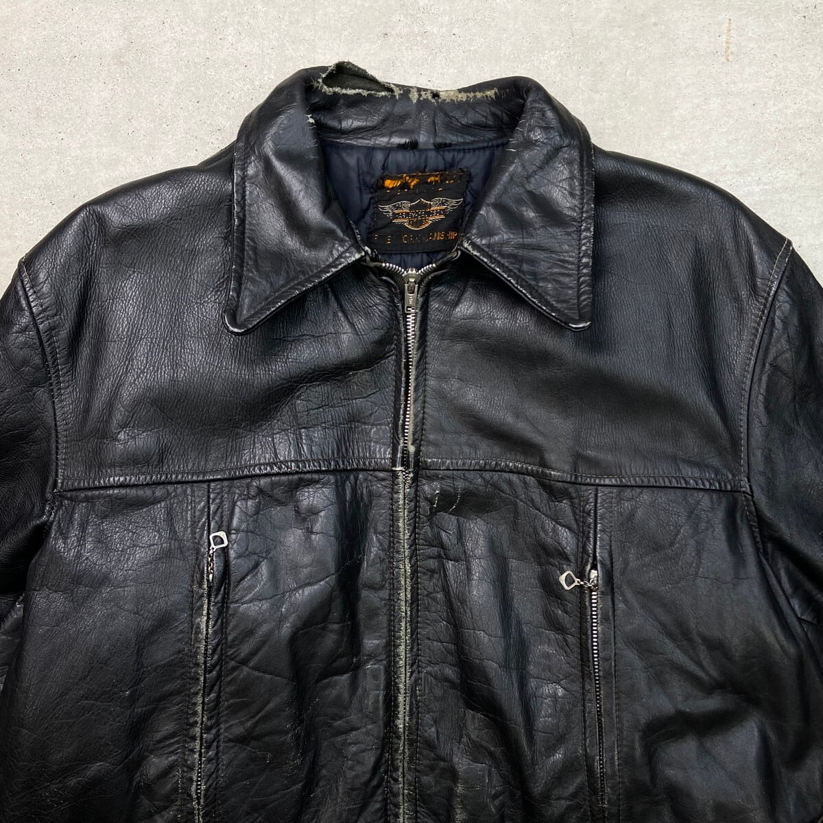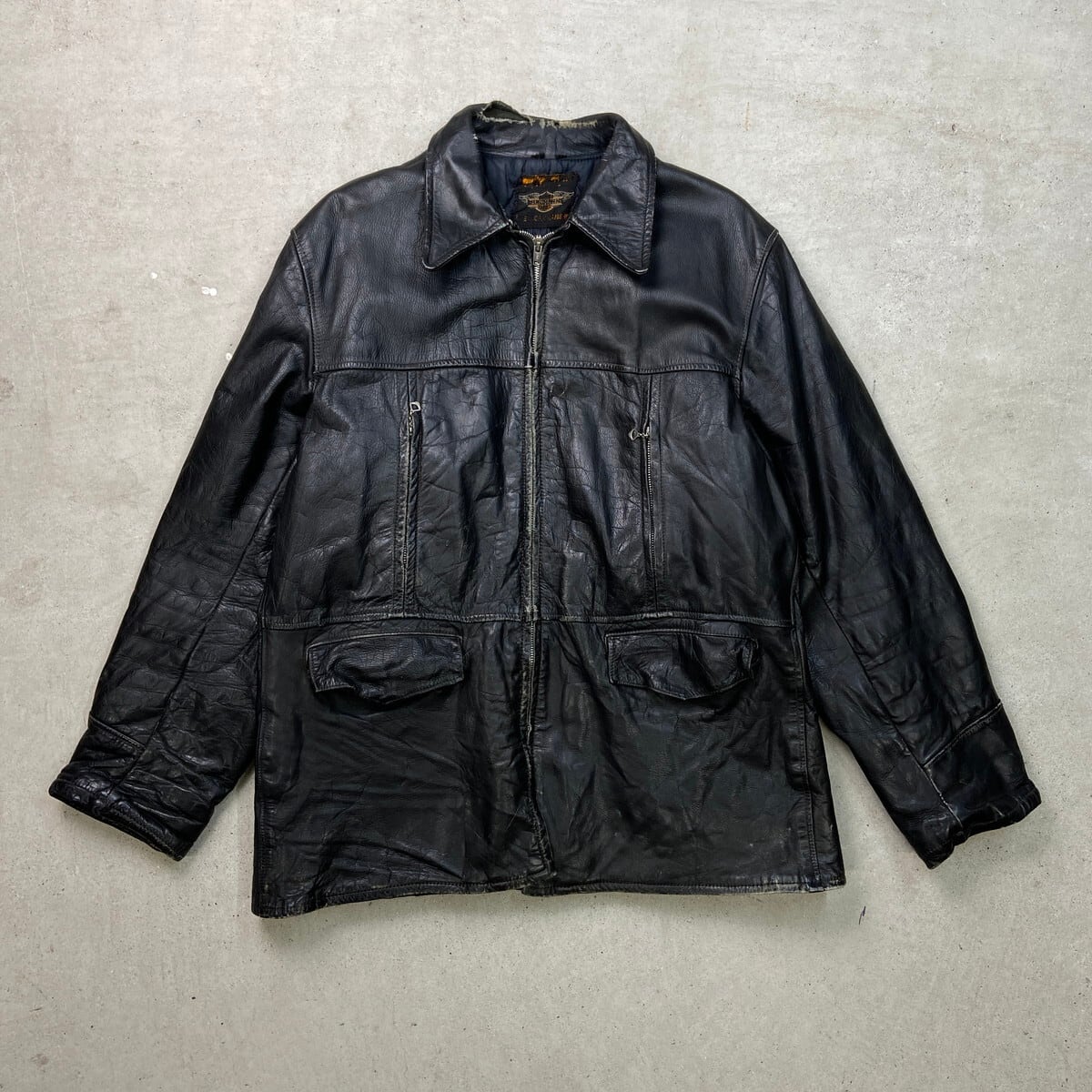 50年代 ウイングタグ HARLEY DAVIDSON ハーレーダビッドソン TOWNS MAN タウンズマン カーコート メンズXL相当 古着 50s VINTAGE ヴィンテージ レザージャケット 革ジャン ホースハイド IDEALジッパー 黒【ブルゾン・ジャケット】/ブラック