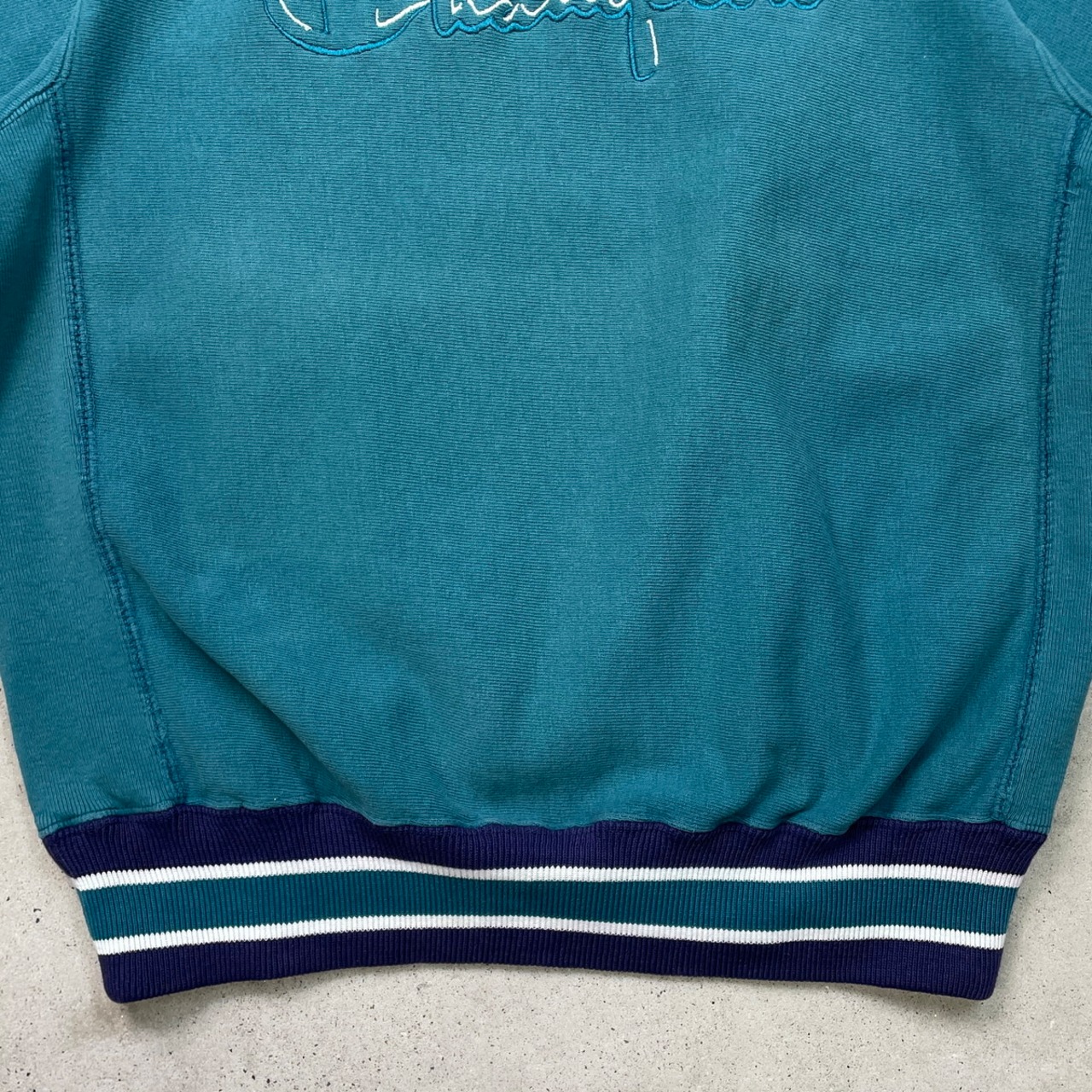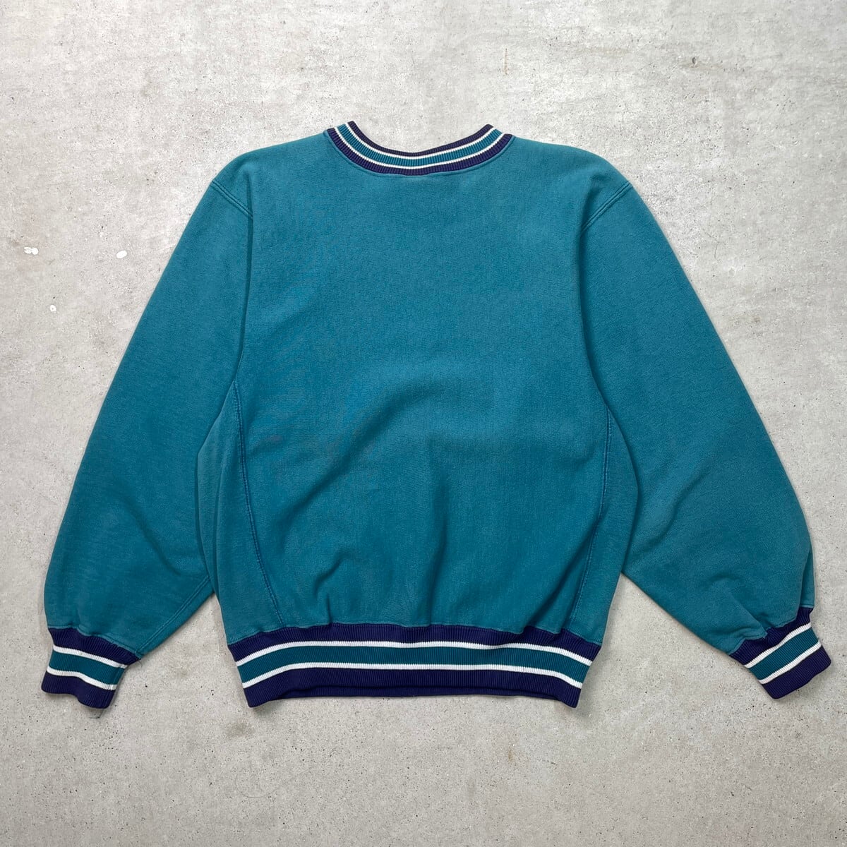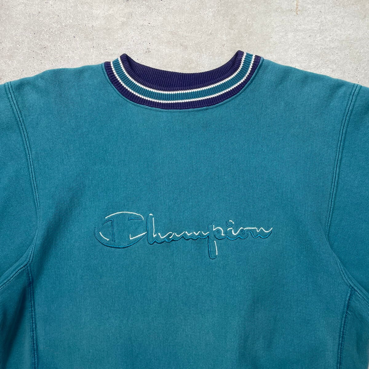 90年代 USA製 Champion チャンピオン REVERSE WEAVE リバースウィーブ 刺繍ロゴ スウェットシャツ リブボーダー メンズM 古着 90s VINTAGE ヴィンテージ アメカジ スウェット トレーナー ターコイズグリーン【スウェット】/グリーン