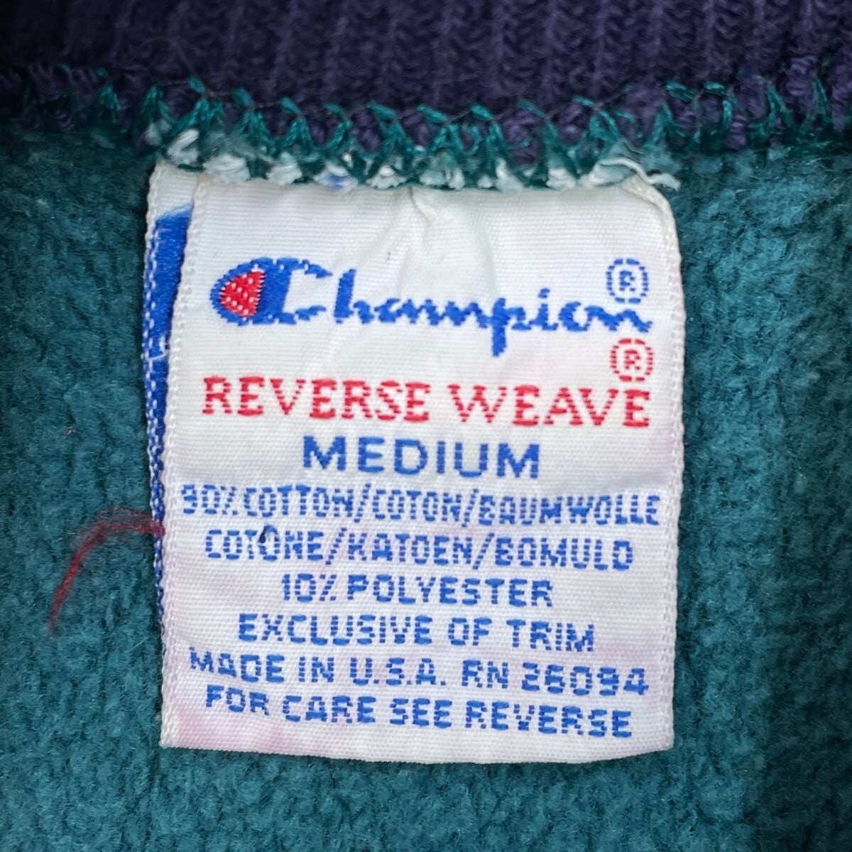 ■90年代 USA製 Champion チャンピオン REVERSE WEAVE リバースウィーブ 刺繍ロゴ スウェットシャツ リブボーダー メンズM 古着 90s VINTAGE ヴィンテージ アメカジ スウェット トレーナー ターコイズグリーン【スウェット】/グリーン