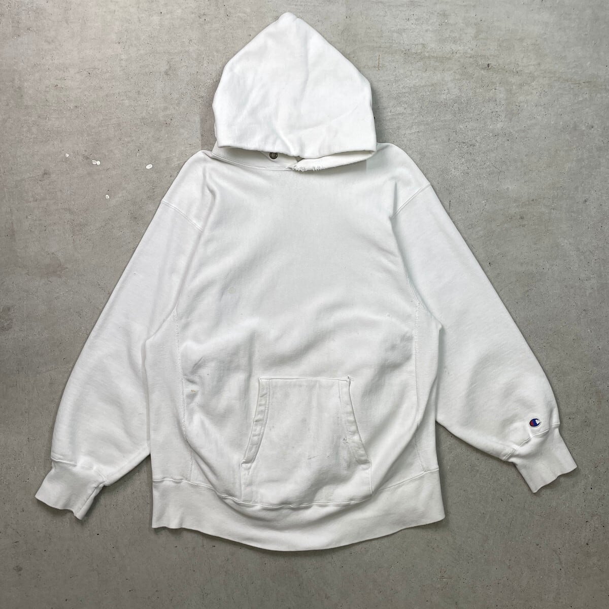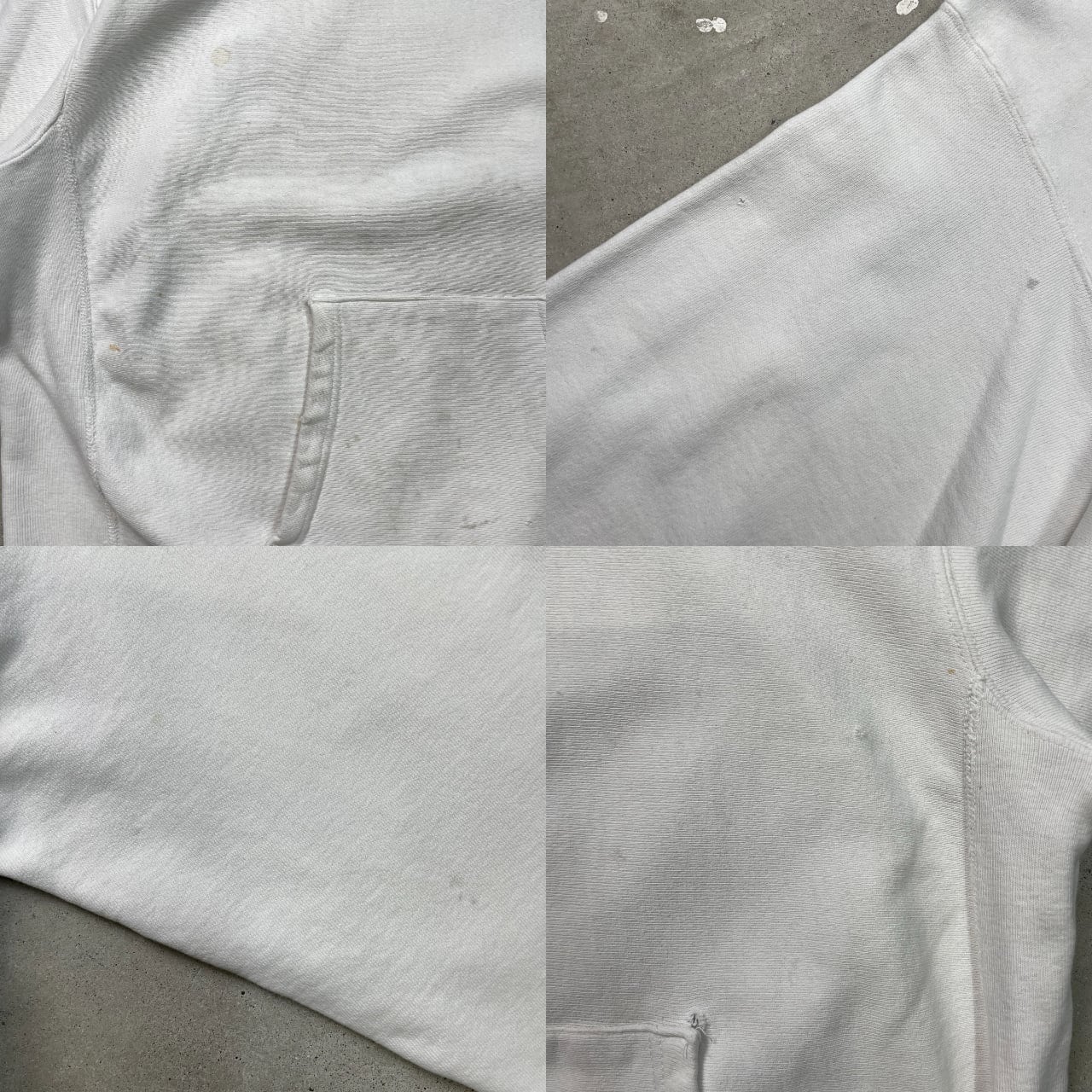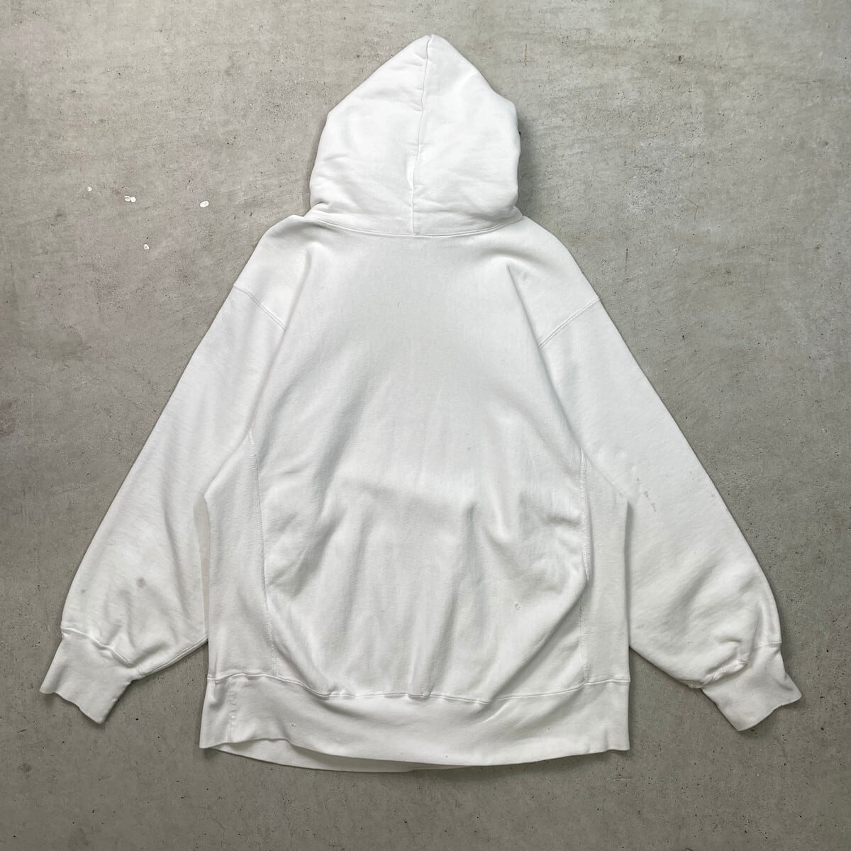 80年代 USA製 Champion チャンピオン REVERSE WEAVE リバースウィーブ 目無し 雰囲気系 スウェットパーカー メンズL相当 古着 80s VINTAGE ヴィンテージ アメカジ トリコタグ トレーナー 白色【スウェット】/ホワイト