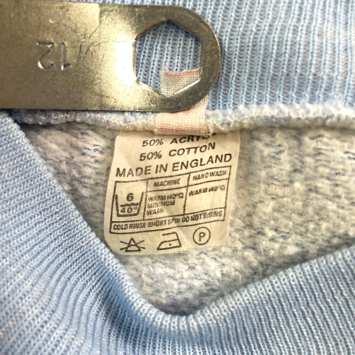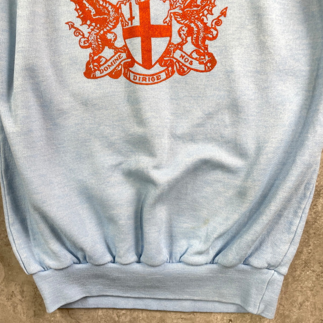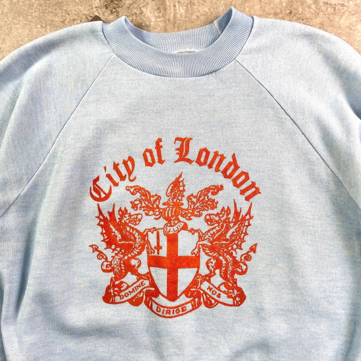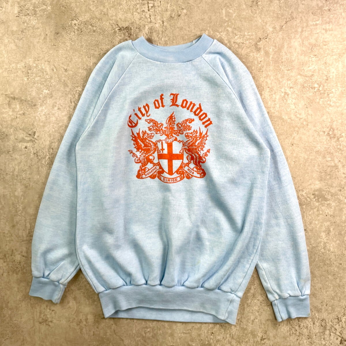 70年代 英国製 CITY OF LONDON ユーロ ラグランスウェットシャツ メンズS相当 古着 70s ヴィンテージ VINTAGE ヴィンスウェ ビンスエ アメカジ トレーナー ロンドン 紋章 スカイブルー 水色【スウェット】/ブルー