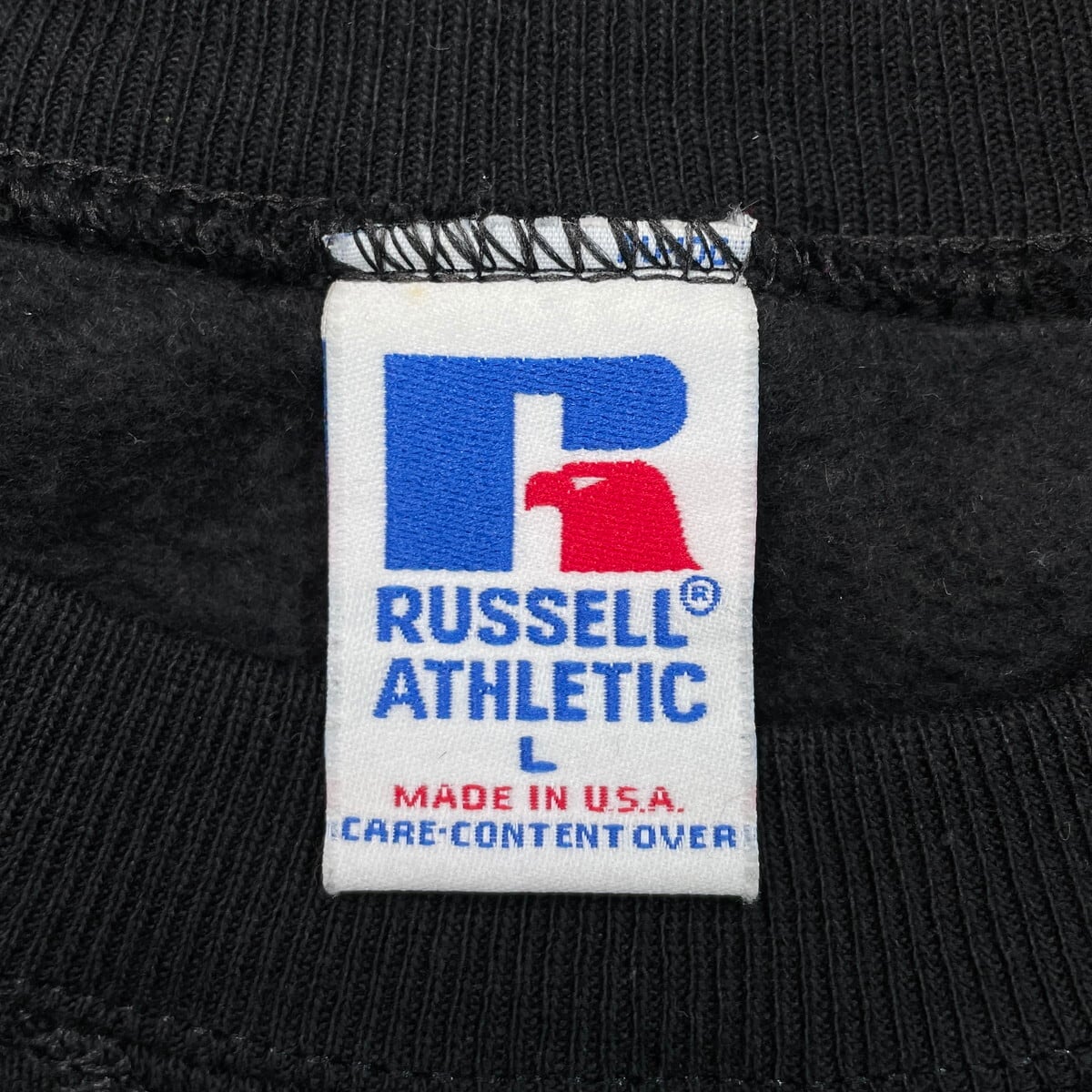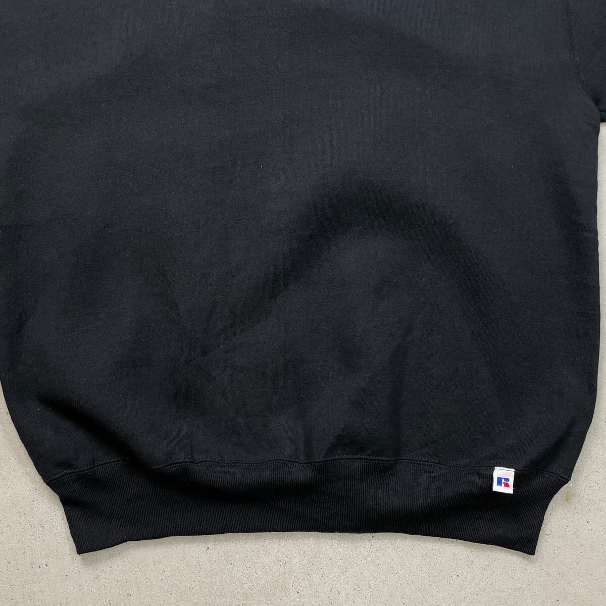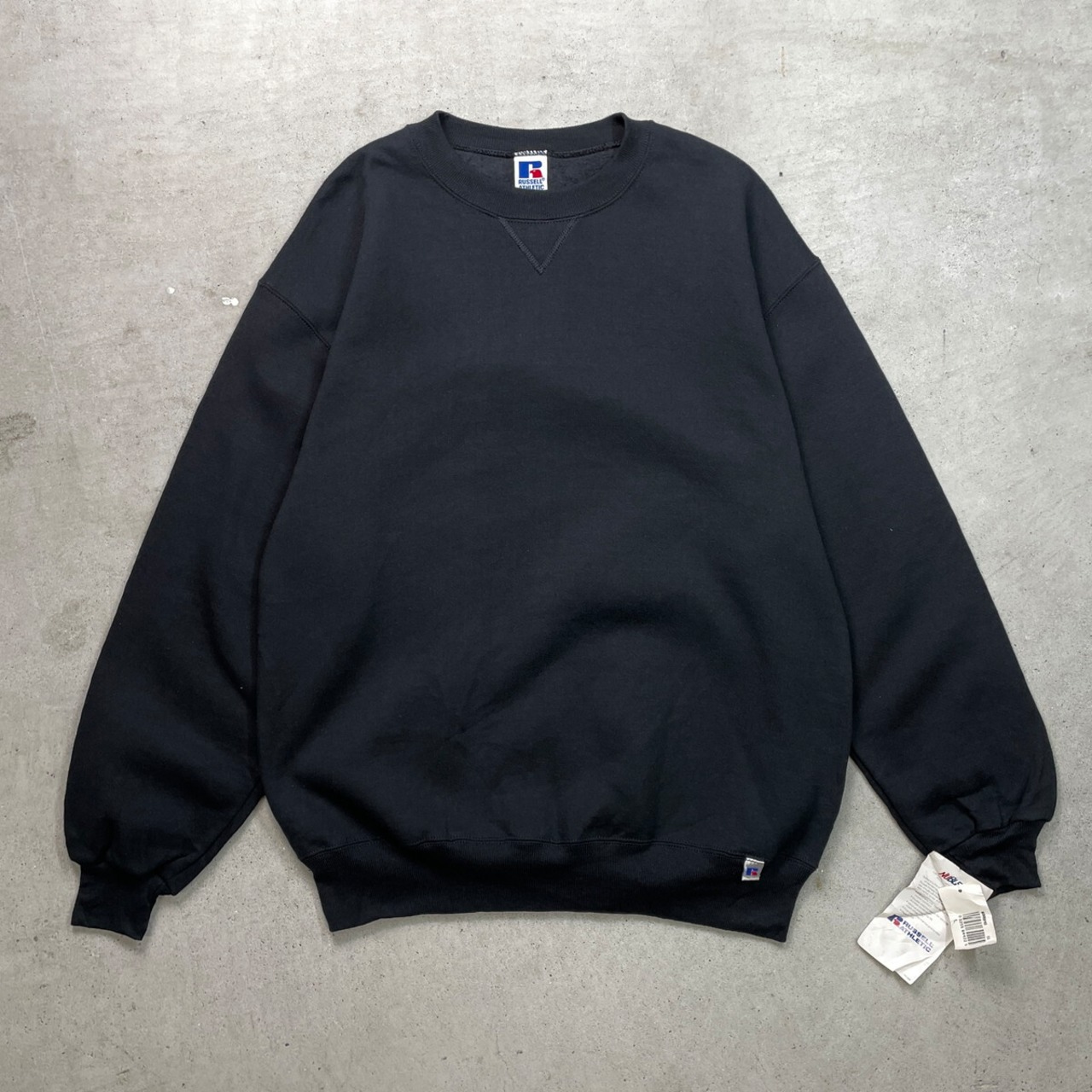 DEAD STOCK 90年代 USA製 RUSSELL ATHLETIC ラッセル ブランクスウェットシャツ 無地 メンズL相当 古着 90s VINTAGE ヴィンテージ アメカジ トレーナー NOS デッドストック 前Vガゼット 刺繍タグ 黒【スウェット】/ブラック