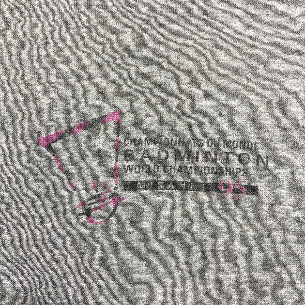 ■90年代 adidas アディダス BADMINTON WORLD CHAMPIONSHIPS ワンポイントプリント スウェットシャツ メンズXL相当 古着 90s VINTAGE ヴィンテージ 切り替えデザイン 万国旗タグ バドミントン 袖ロゴ刺繍 ブラック 灰色【スウェット】/グレー