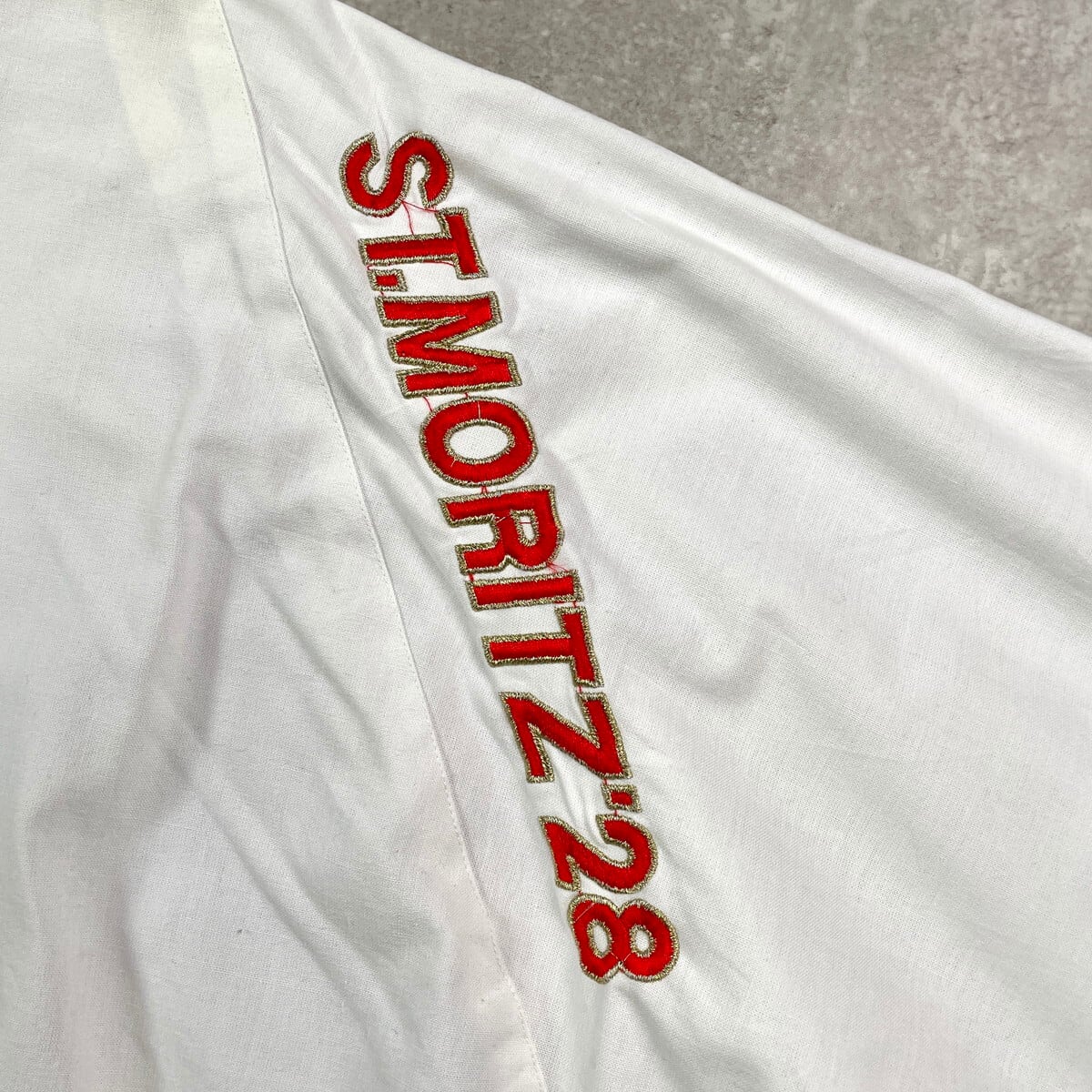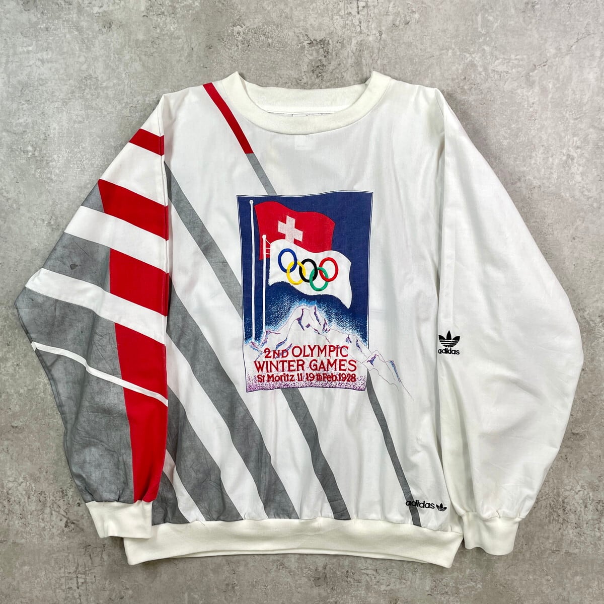 80年代 adidas アディダス 2ND OLYMPIC WINTER GAMES ロングTシャツ メンズ2XL相当 古着 80s VINTAGE ヴィンテージ 銀タグ サンモリッツ 冬季オリンピック 袖ロゴ刺繍 ロンT ビッグサイズ 大きいサイズ ホワイト【スウェット】/マルチカラー