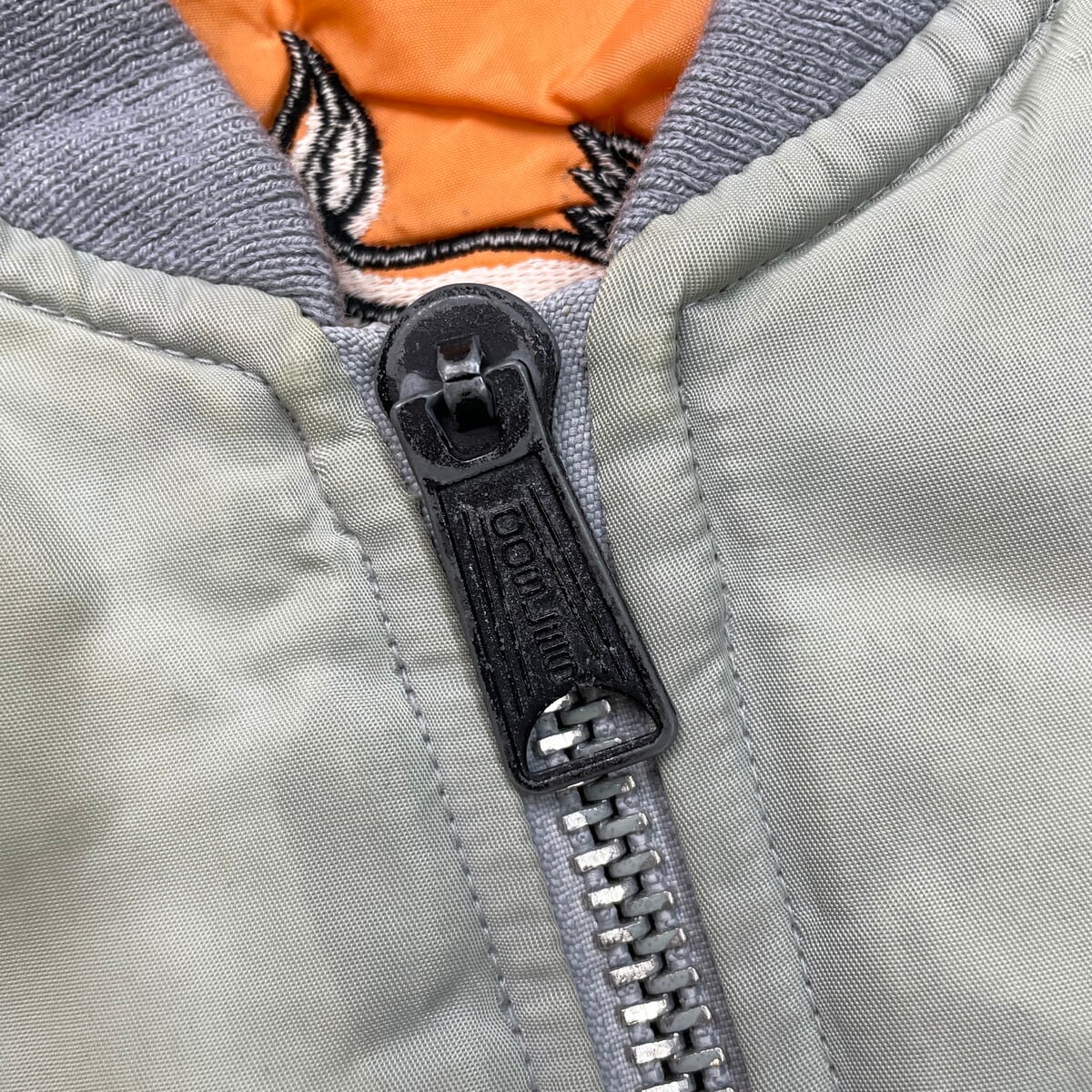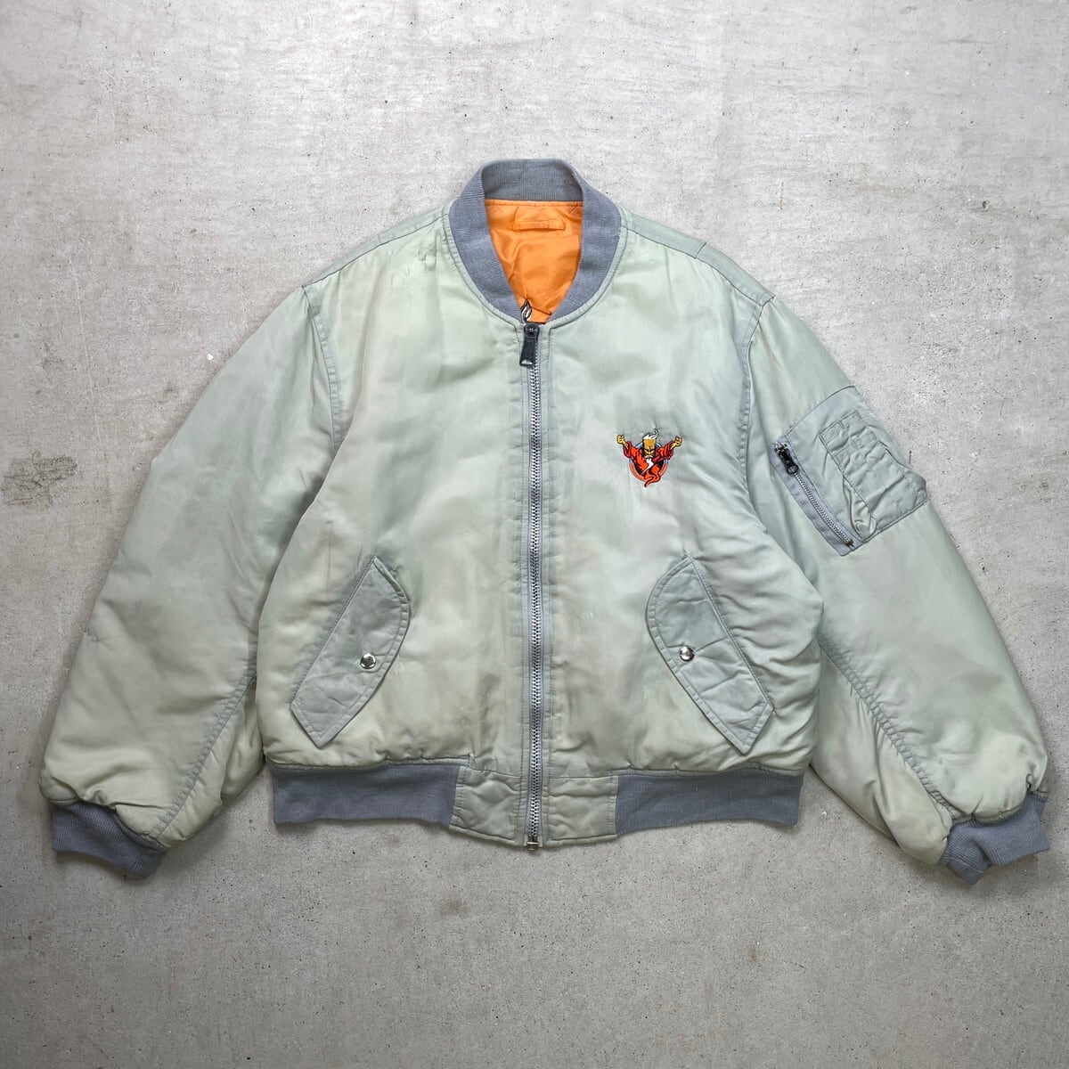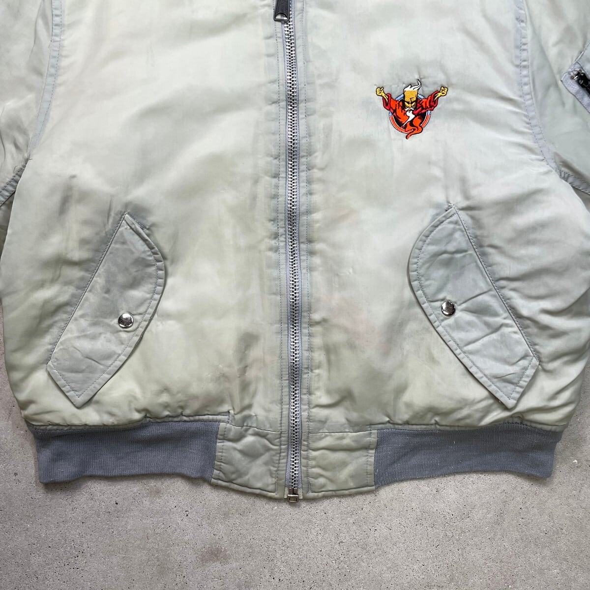THUNDERDOME MA-1タイプ フライトジャケット ワンポイントロゴワッペン メンズXL相当 古着 ボンバージャケット サンダードーム 音楽フェスティバル シルバー ライトグレー 灰色【ミリタリージャケット】/シルバー