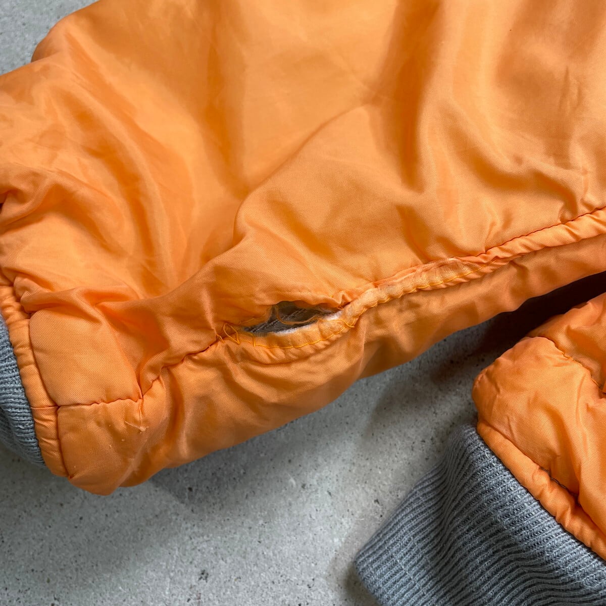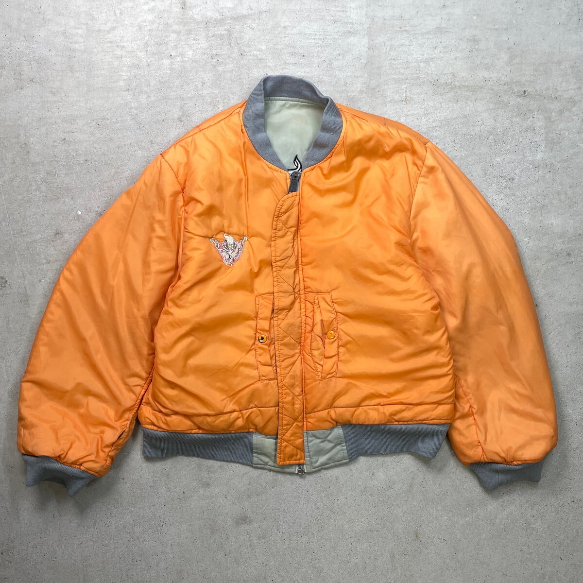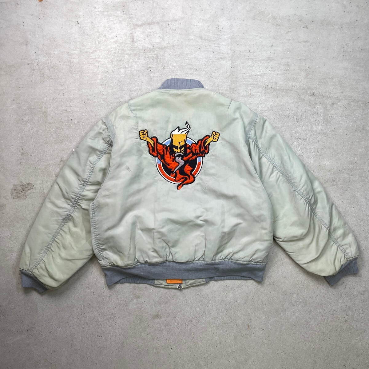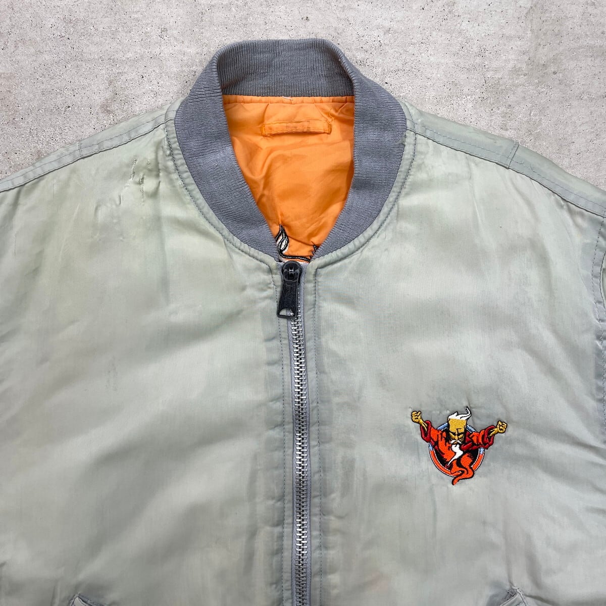 THUNDERDOME MA-1タイプ フライトジャケット ワンポイントロゴワッペン メンズXL相当 古着 ボンバージャケット サンダードーム 音楽フェスティバル シルバー ライトグレー 灰色【ミリタリージャケット】/シルバー