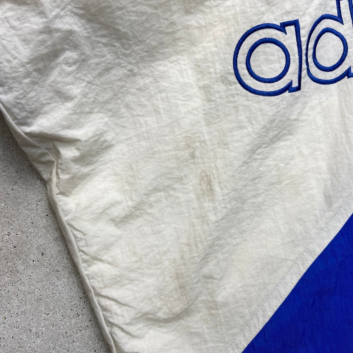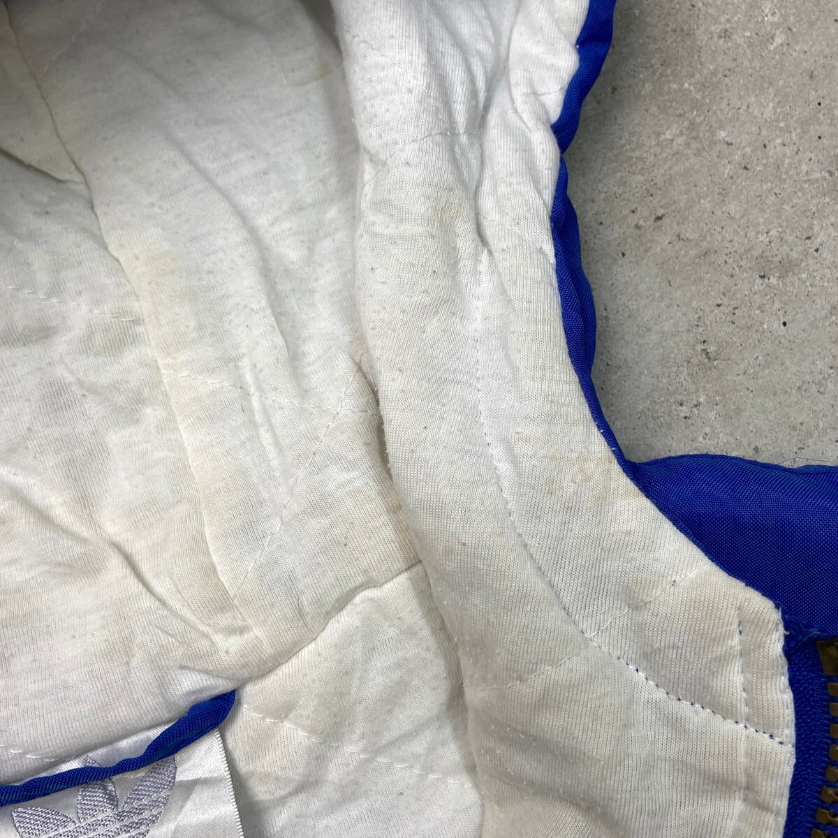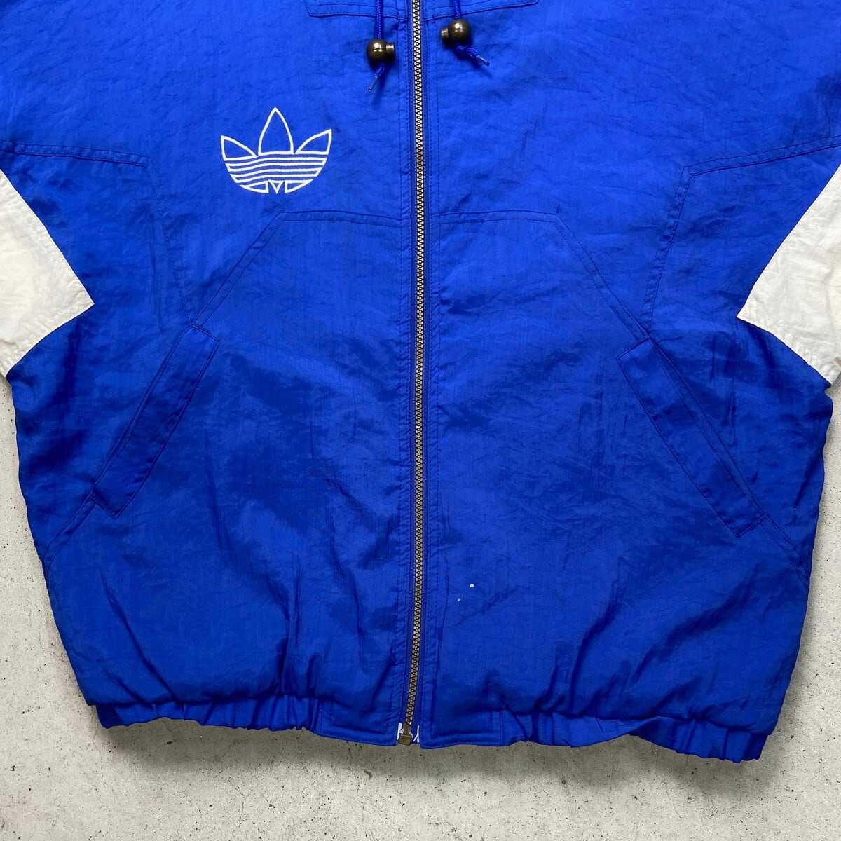 80年代 adidas アディダス 中綿入り ナイロンジャケット メンズXL相当 古着 80s VINTAGE ヴィンテージ 銀タグ キルティングライナー 着用 ブルー ホワイト【ナイロンジャケット】/ブルー