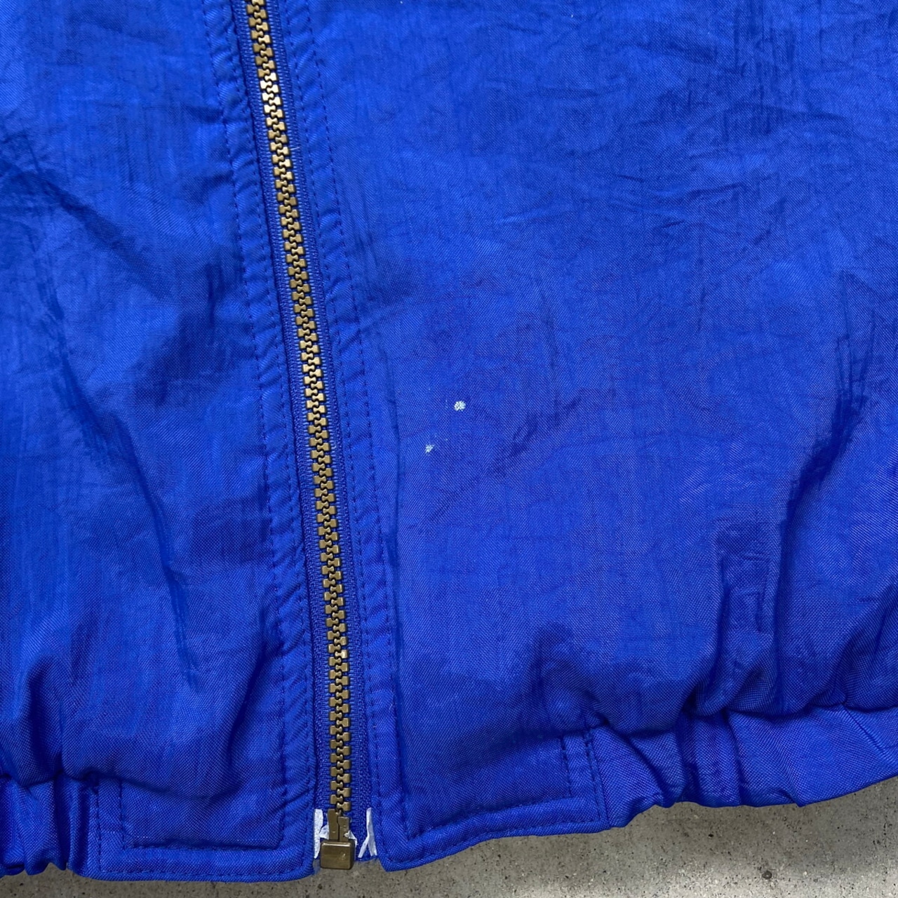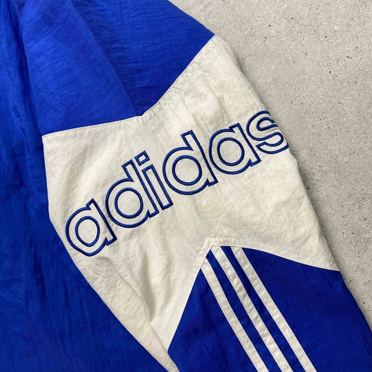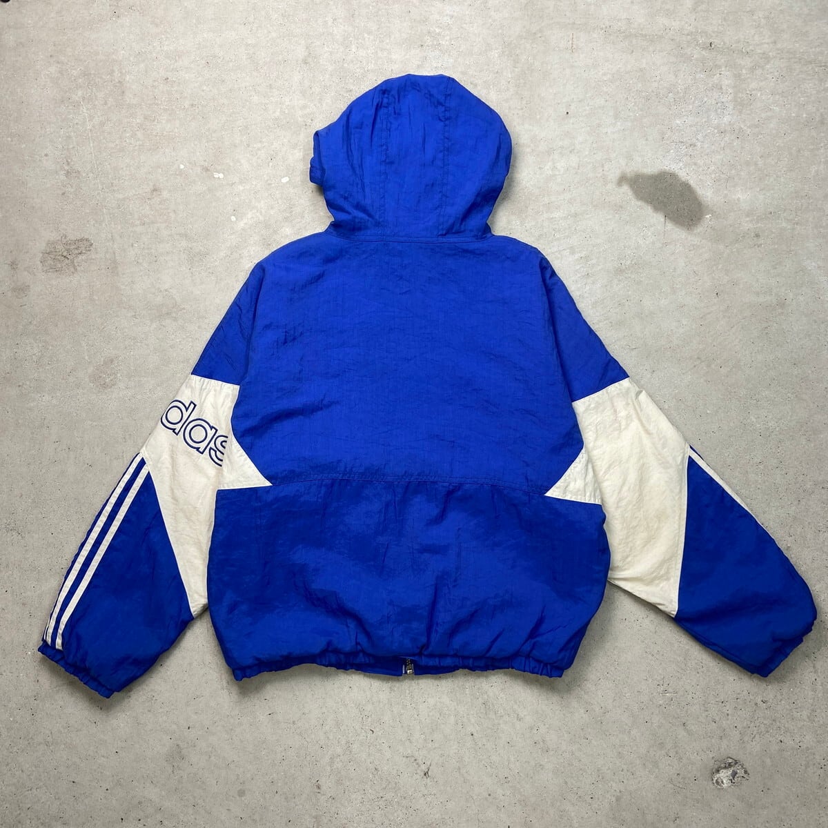 80年代 adidas アディダス 中綿入り ナイロンジャケット メンズXL相当 古着 80s VINTAGE ヴィンテージ 銀タグ キルティングライナー 着用 ブルー ホワイト【ナイロンジャケット】/ブルー