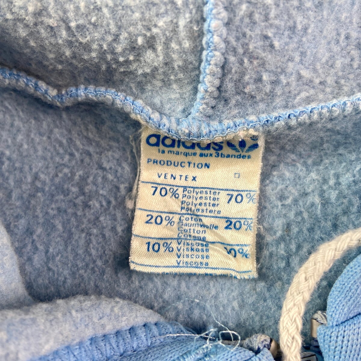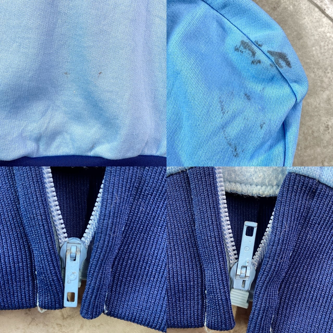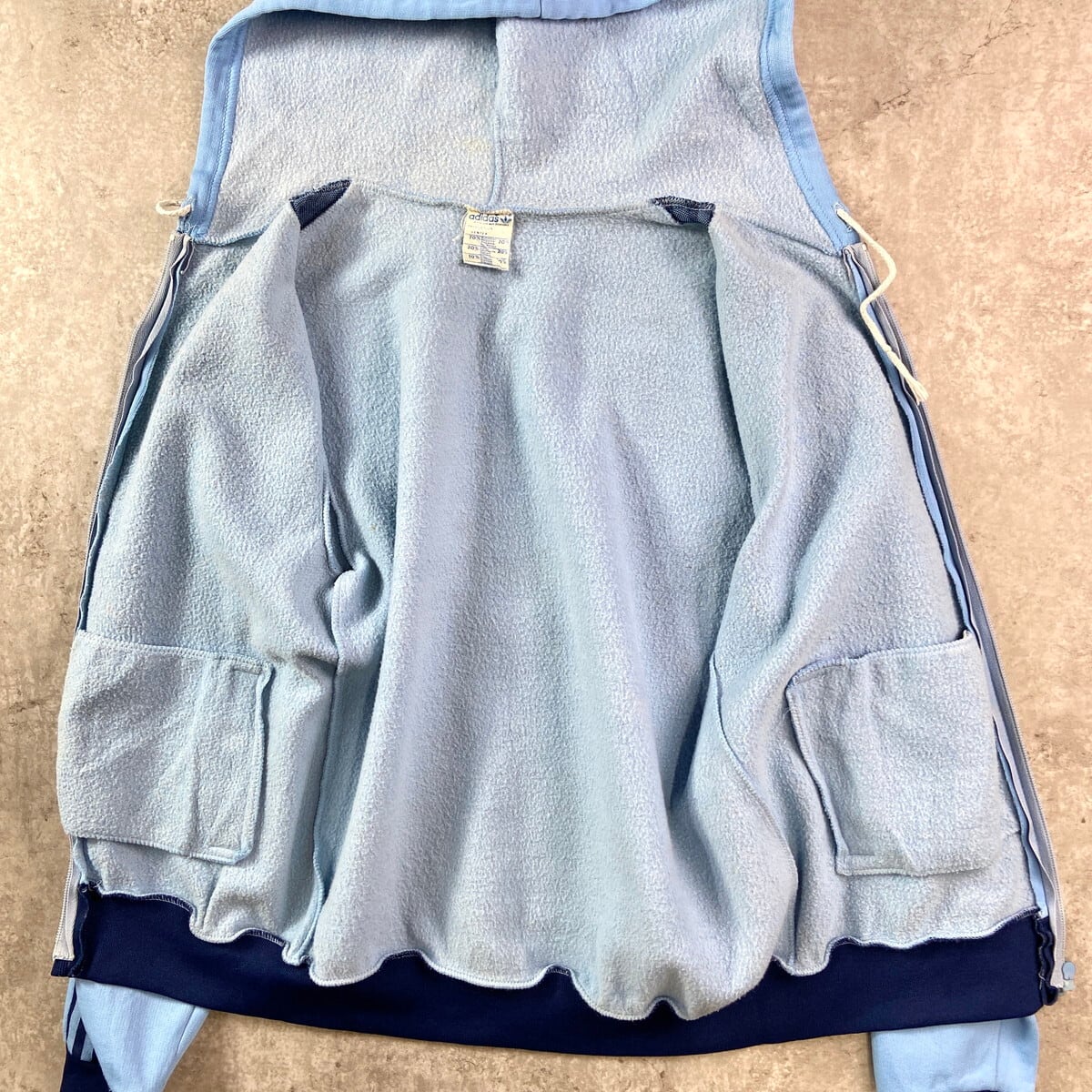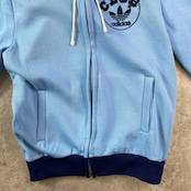 70~80年代 VENTEX社製 adidas CLUB アディダス フロッキープリント ジャージパーカー トラックジャケット レディースXS相当 古着 70s 80s VINTAGE ヴィンテージ トレフォイルロゴ サイドライン【ジャージ・トラックジャケット】/ライトブルー