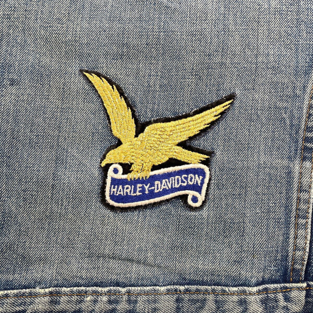 70~80年代 USA製 Levi's リーバイス カスタム HARLEY-DAVIDSON ワッペン付き 襤褸 ボロ トラッカーデニムジャケット メンズS相当 レディース 古着 70s 80s ヴィンテージ VINTAGE アメカジ ハーレーダビッドソン 鷲 ワシ Gジャン アタリ ハチノス 青色【デニムジャケット】/ブルー