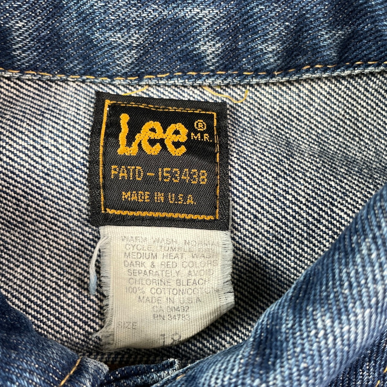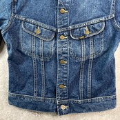 ■80年代 USA製 Lee リー カスタム 空山基 SEXY ROBOT セクシーロボット デニムジャケット レディースS相当 メンズXS相当 古着 80s VINTAGE ヴィンテージ アメカジ バックプリント 青色【デニムジャケット】/ブルー