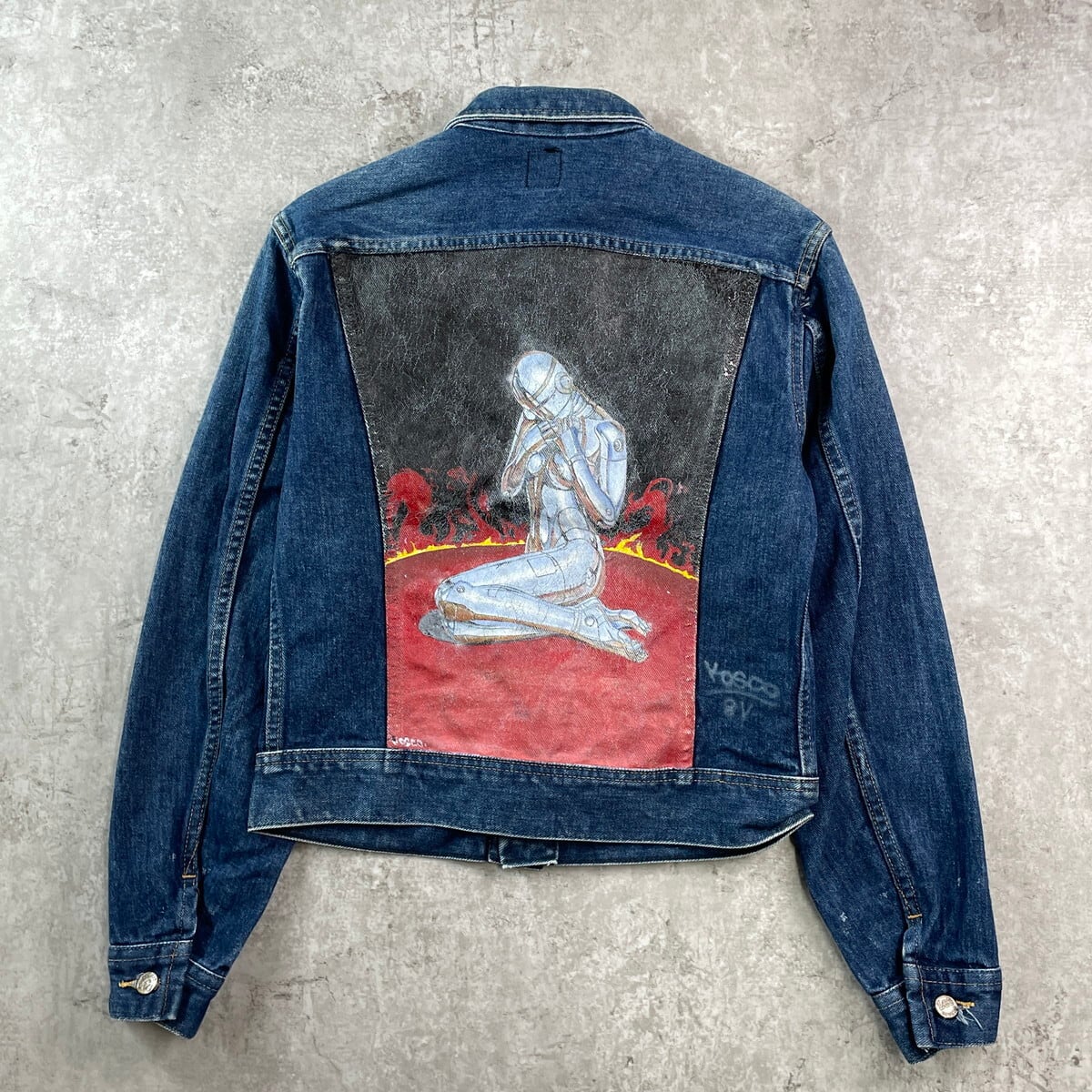80年代 USA製 Lee リー 空山基 SEXY ROBOT セクシーロボット デニムジャケット レディースS相当 メンズXS相当 古着 80s VINTAGE ヴィンテージ アメカジ カスタムプリント 青色【デニムジャケット】/ブルー