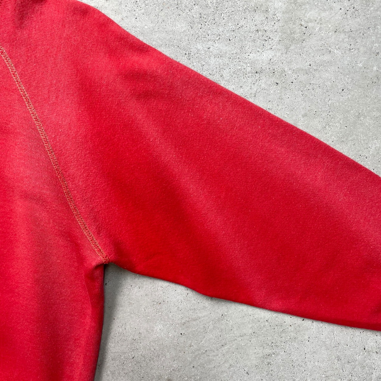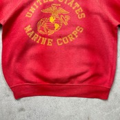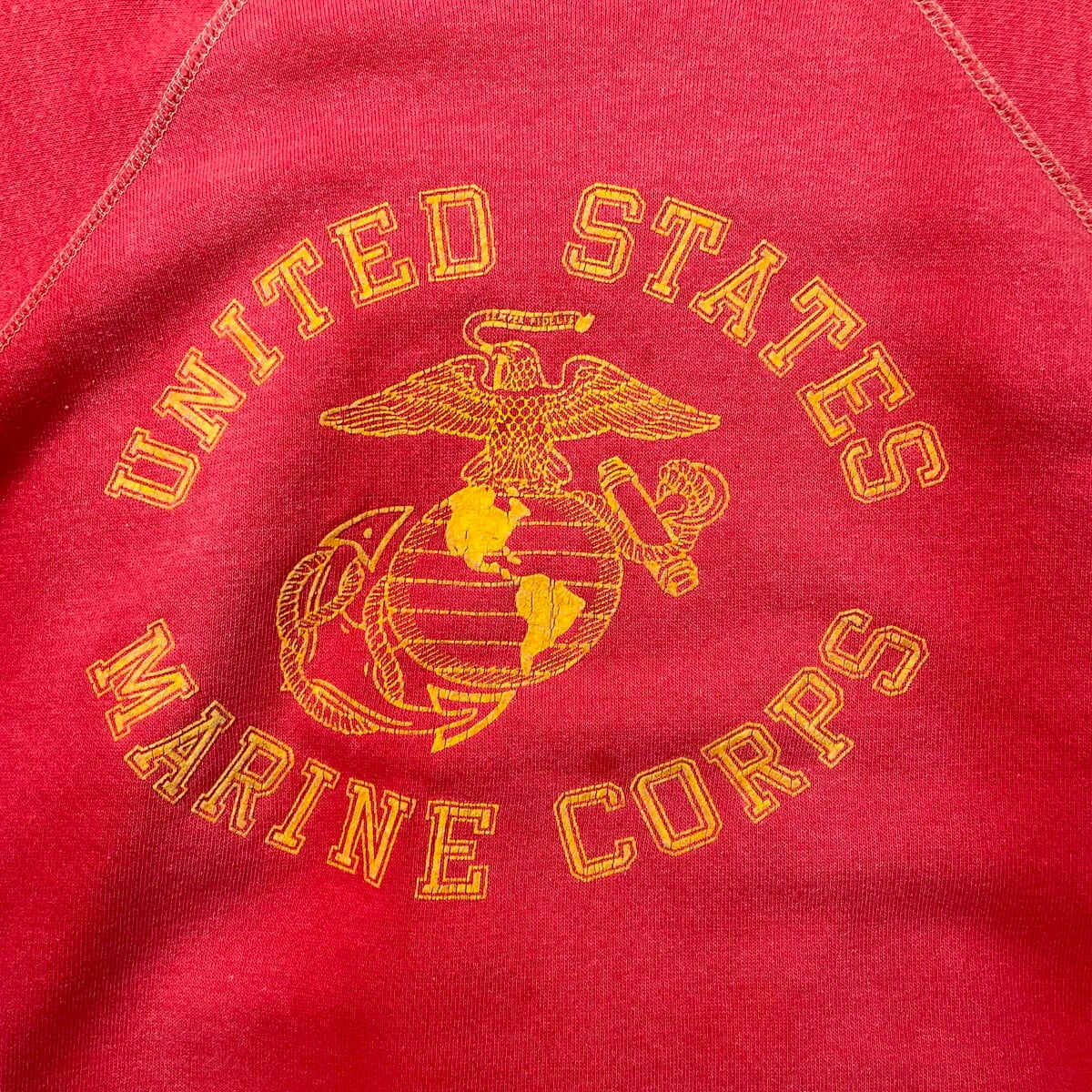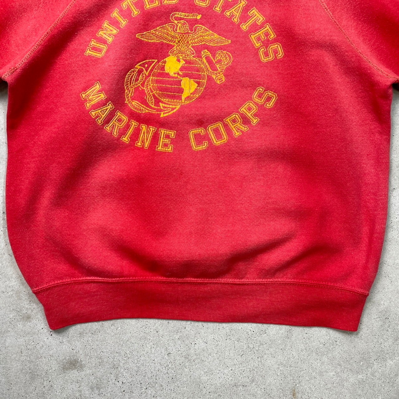 70~80年代 USA製 UNITED STATES MARINE CORPS フロッキープリント スウェットシャツ メンズS~M相当 古着 70s 80s ヴィンテージ VINTAGE アメカジ ラグランスリーブ フェードレッド 赤色【スウェット】/レッド
