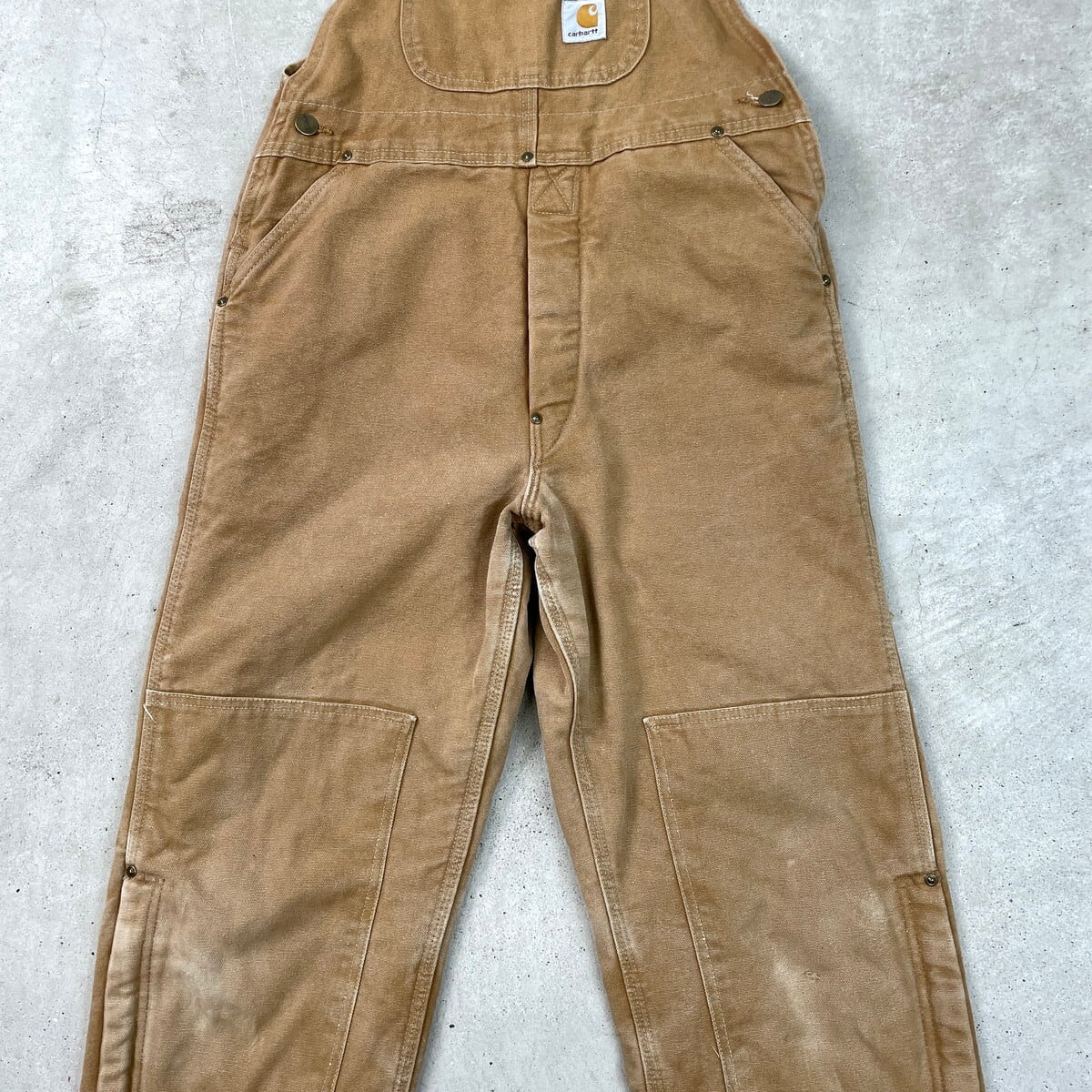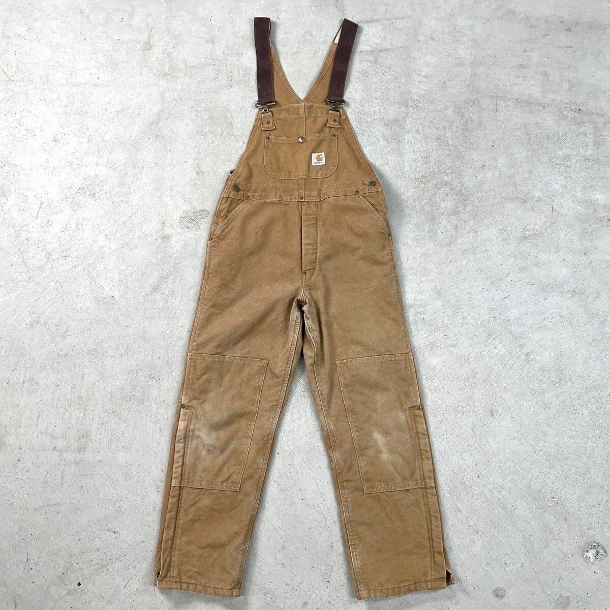 80年代 USA製 Carhartt カーハート ダック地 ダブルニー オーバーオール メンズW34相当 古着 80s VINTAGE ヴィンテージ キルティングライナー ボタンフライ キャメルブラウン【オーバーオール】/ベージュ