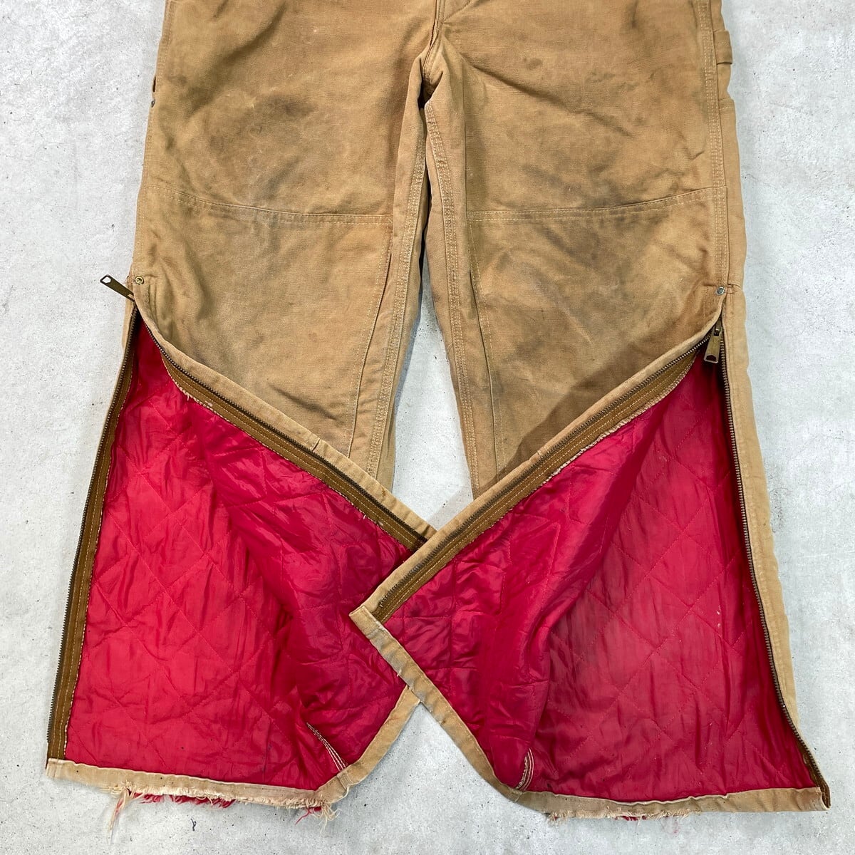 ■80年代 USA製 Carhartt カーハート ダック地 ダブルニー オーバーオール メンズW36 古着 80s VINTAGE ヴィンテージ キルティングライナー ボタンフライ キャメルブラウン【オーバーオール】/ベージュ