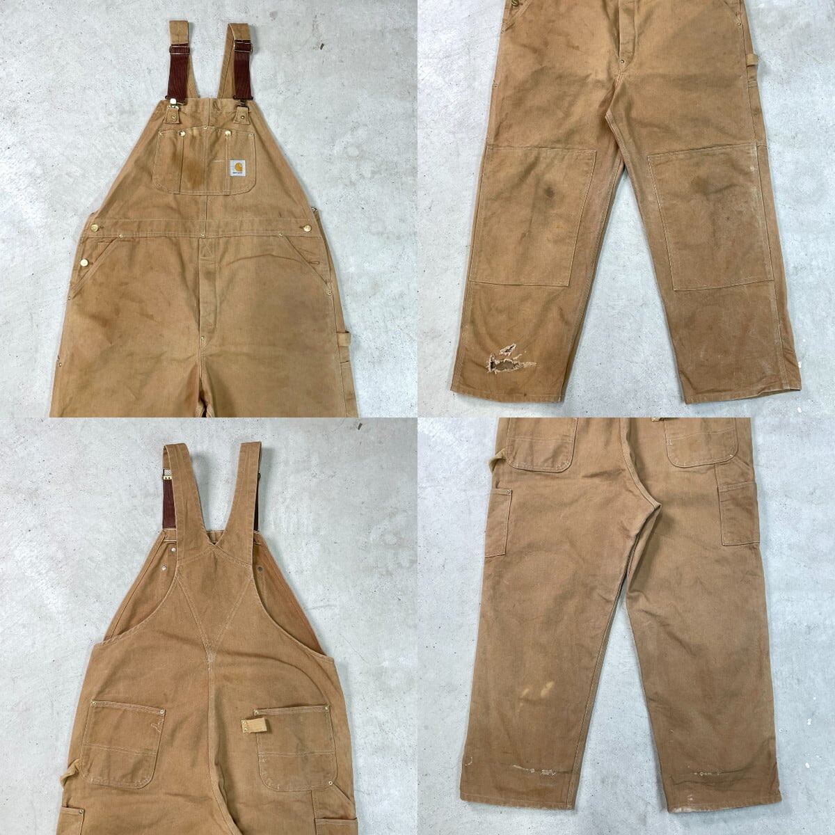 ■90年代 USA製 Carhartt カーハート ダック地 ダブルニー オーバーオール メンズW43相当 古着 90s VINTAGE ヴィンテージ ボタンフライ ビッグサイズ 大きいサイズ キャメルブラウン【オーバーオール】/ベージュ