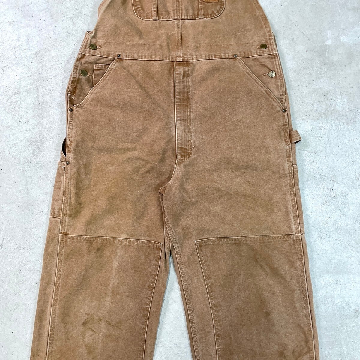 00年代 Carhartt カーハート ダック地 ダブルニー オーバーオール メンズW39相当 古着 00s VINTAGE ヴィンテージ ビッグサイズ 大きいサイズ キャメルブラウン【オーバーオール】/ベージュ