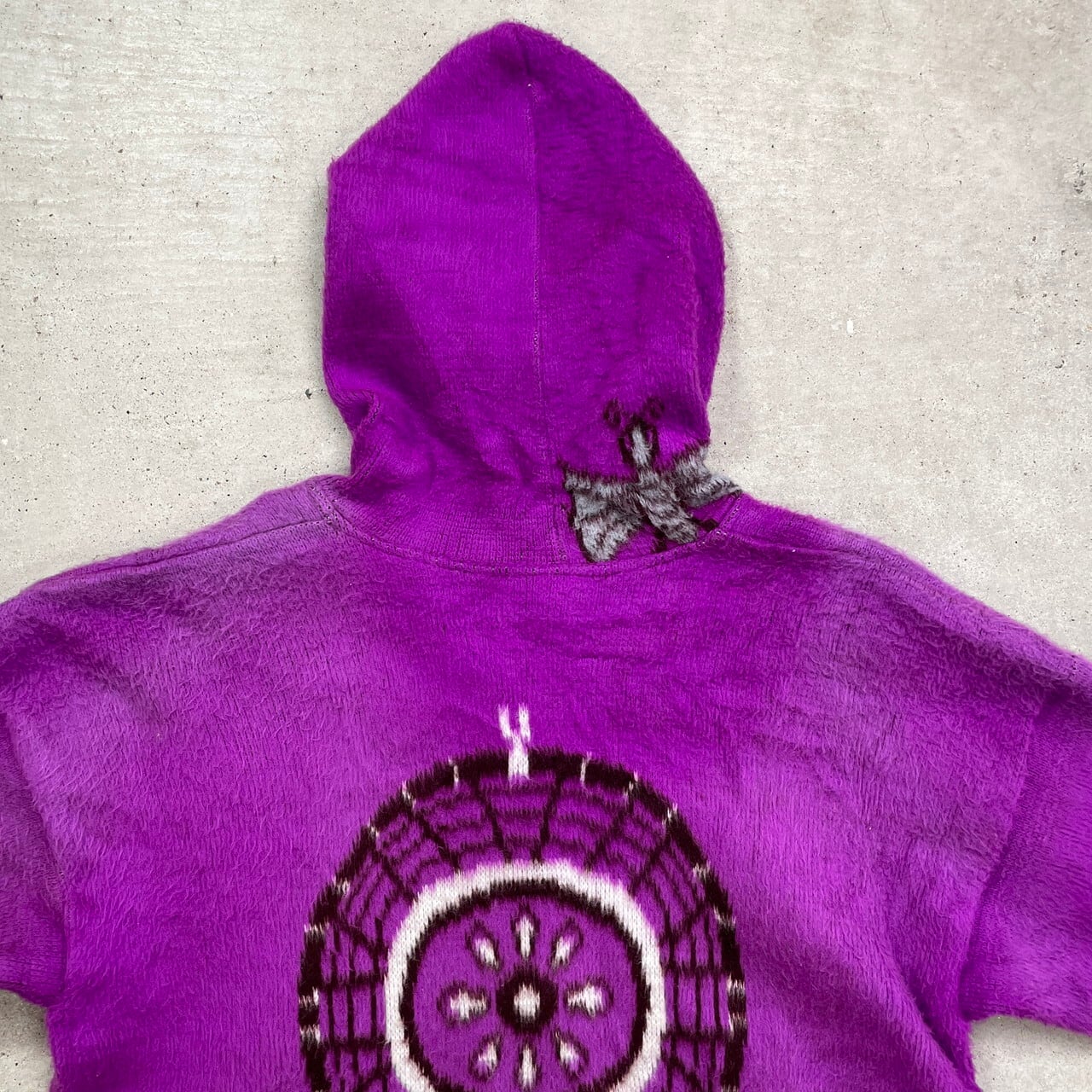 ■ANDES ARTESANIA エクアドルニットパーカー ニットカーディガン ドリームキャッチャー メンズL相当 古着 フルジップパーカー カウチンニット フェードパープル 紫色 【ニットセーター】/パープル