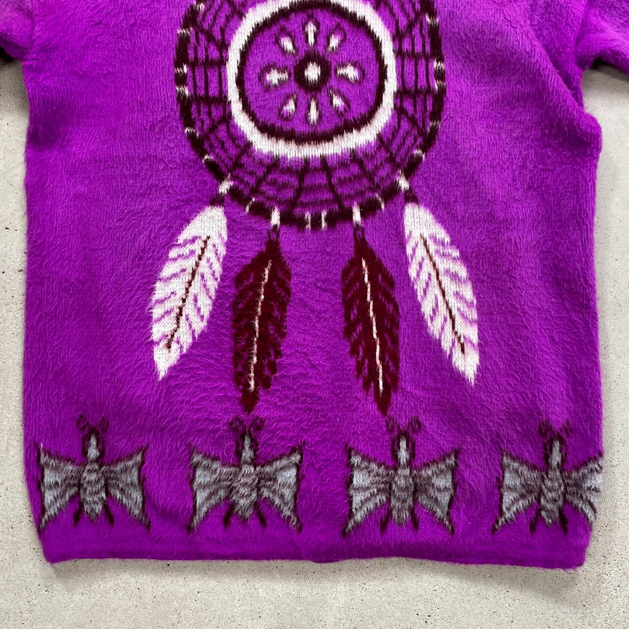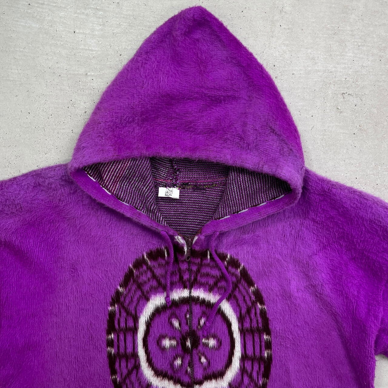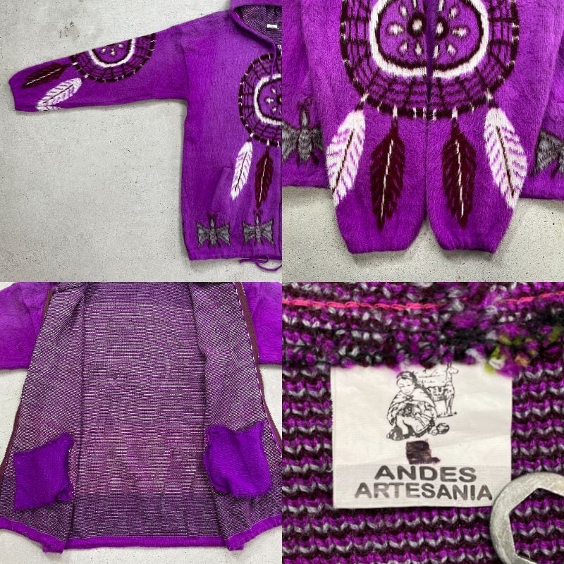 ANDES ARTESANIA エクアドルニットパーカー ニットカーディガン ドリームキャッチャー メンズL相当 古着 フルジップパーカー カウチンニット フェードパープル 紫色 【ニットセーター】/パープル
