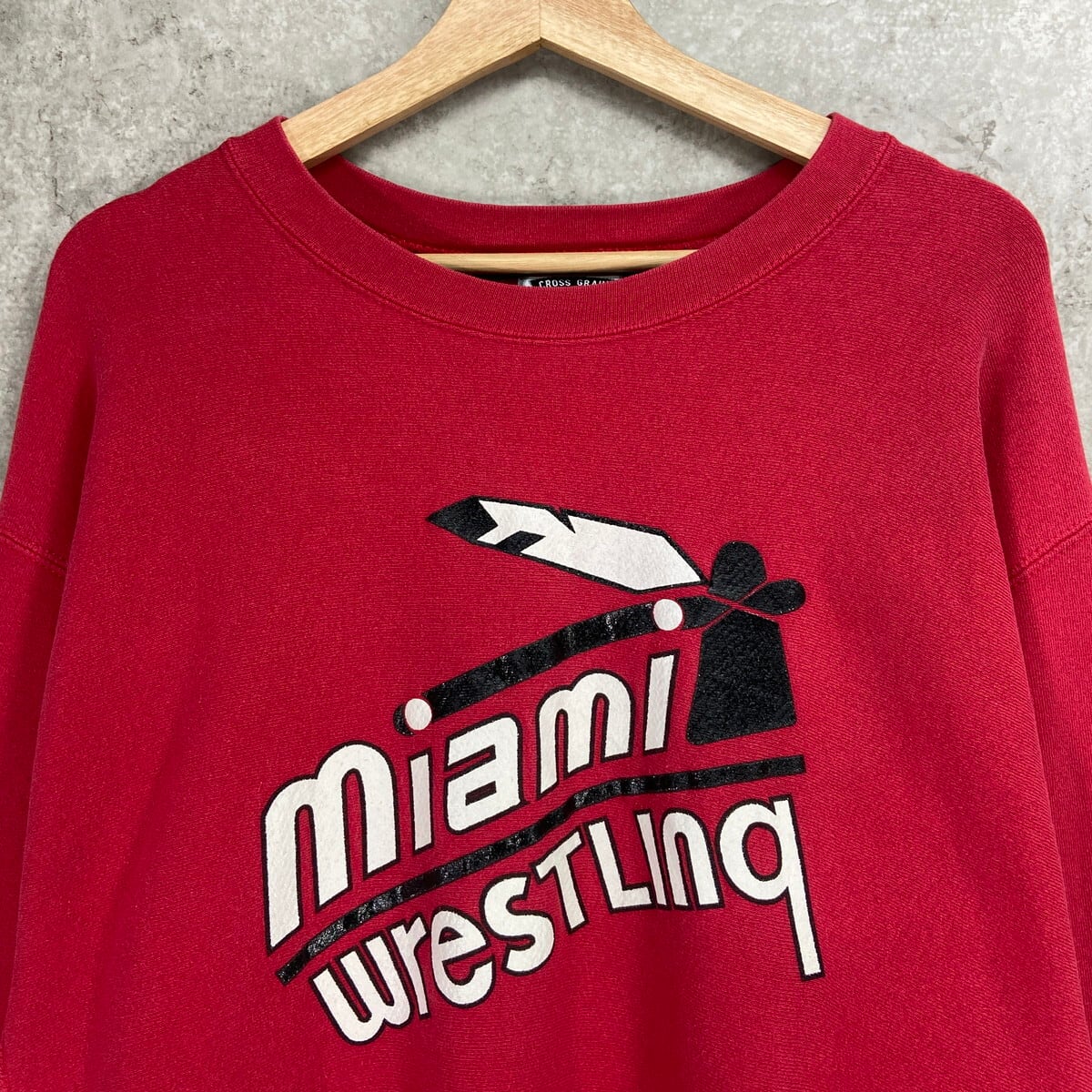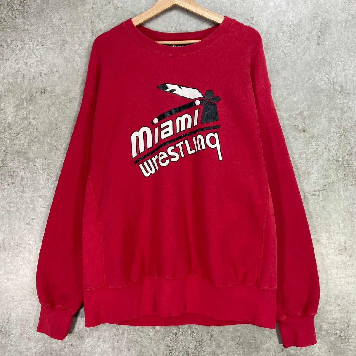 ■90年代 USA製 Lee リー MIAMI WRESTLING スウェットシャツ リバースウィーブタイプ メンズXL 古着 90s VINTAGE ヴィンテージ マイアミ レスリング スポーツ 赤色【スウェットシャツ】/レッド