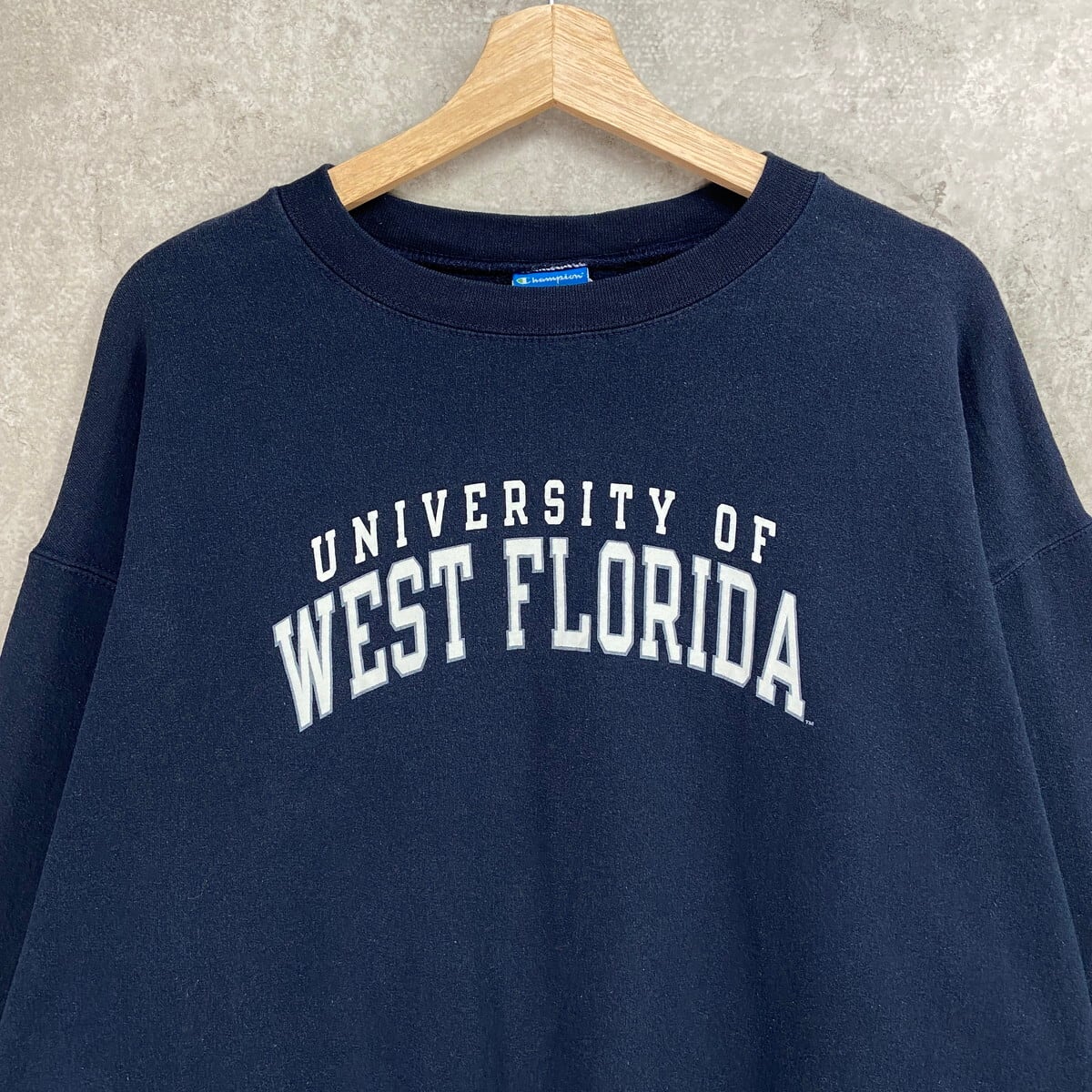 00年代 Champion チャンピオン WEST FLORIDA カレッジプリント スウェットシャツ メンズXL 古着 00s Y2K VINTAGE ヴィンテージ アメカジ ウェストフロリダ大学 トレーナー 紺色【スウェット】/ネイビー