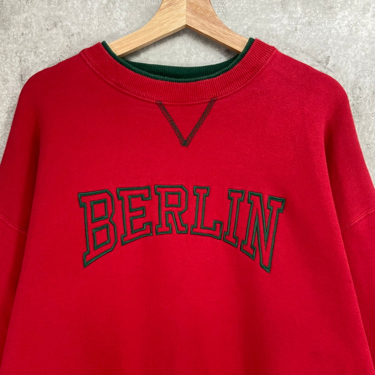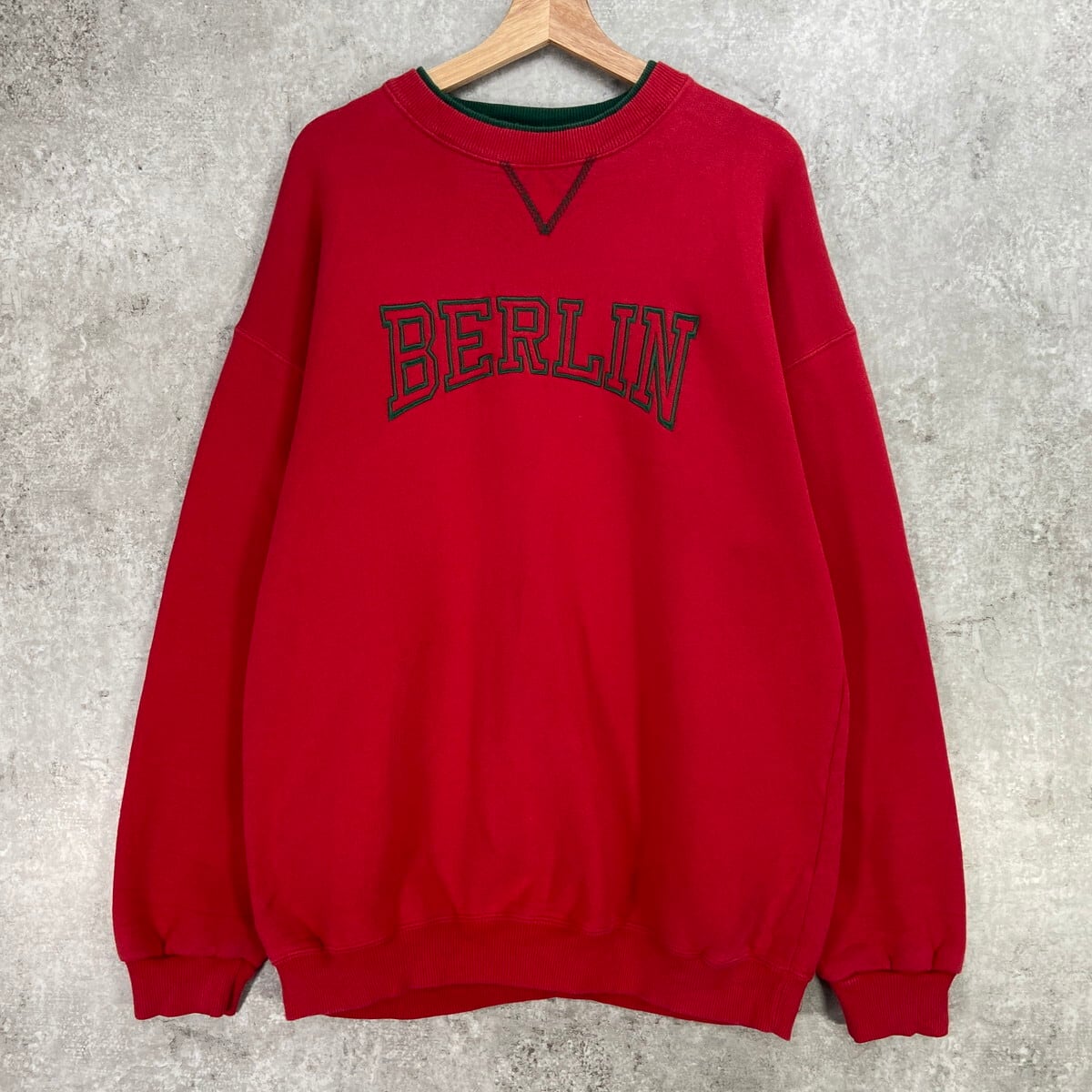 90年代 USA製 BERLIN フェイクレイヤード スウェットシャツ メンズXL相当 古着 90s ヴィンテージ VINTAGE トレーナー 前Vガゼット ベルリン 赤色【スウェット】/レッド