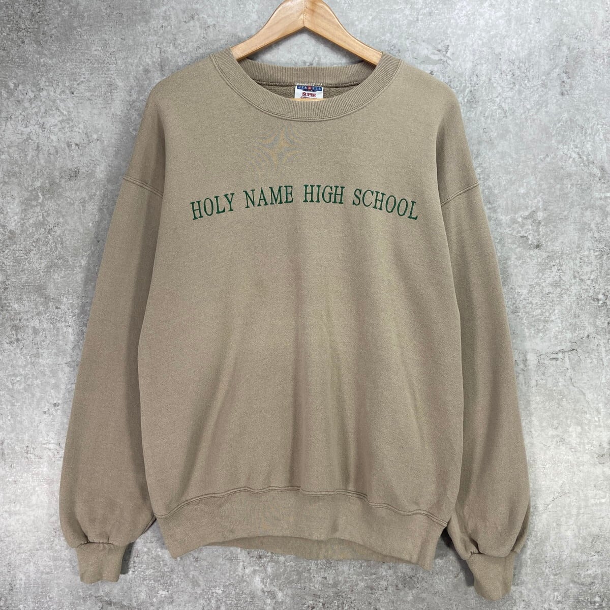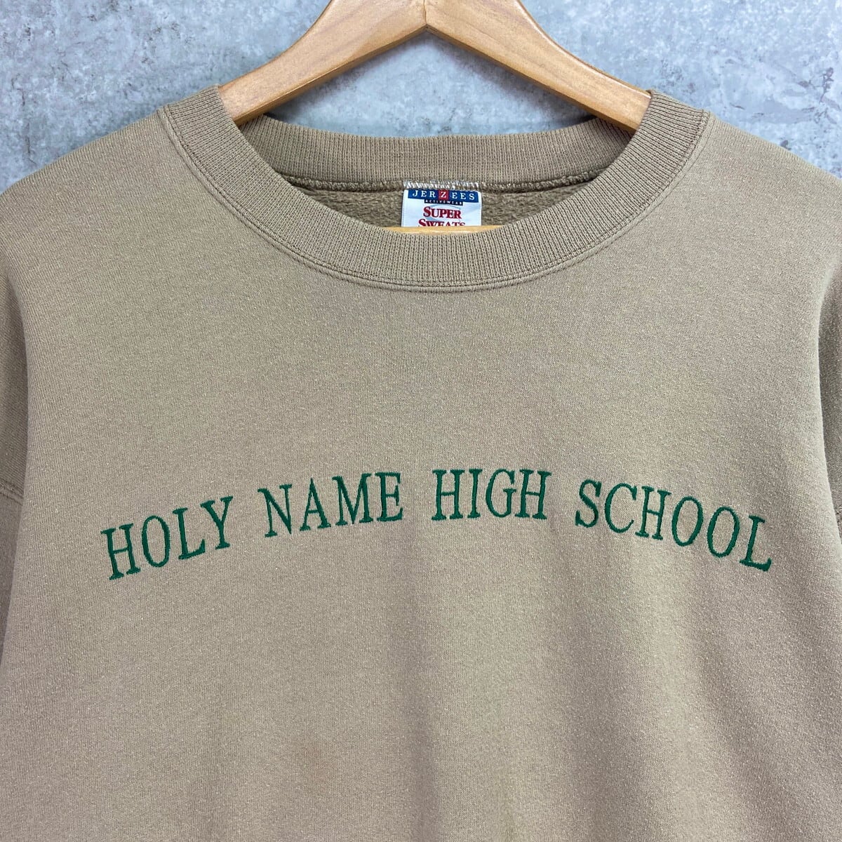■90年代 USA製 HOLY NAME HIGH SCHOOL ロゴ刺繍 スウェットシャツ メンズL 古着 90s ヴィンテージ VINTAGE アメカジ トレーナー モカベージュ【スウェット】/ベージュ