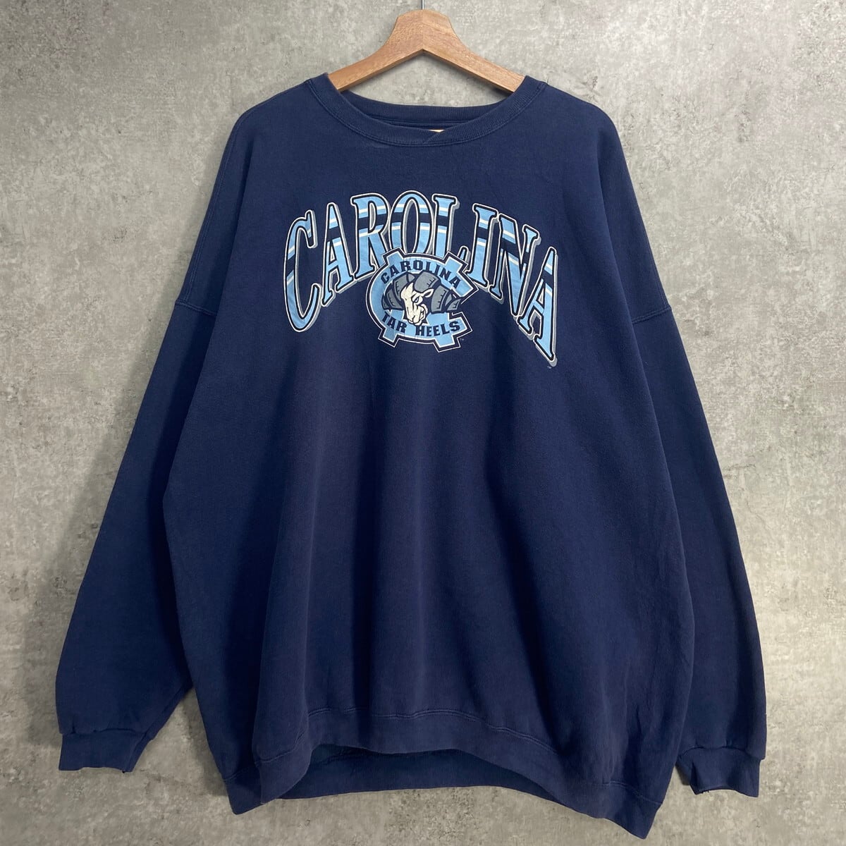 ■90年代 USA製 CAROLINA TAR HEELS カレッジプリント スウェットシャツ メンズ3XL相当 古着 90s VINTAGE ヴィンテージ カロライナ大学 トレーナー 紺色【スウェット】/ネイビー