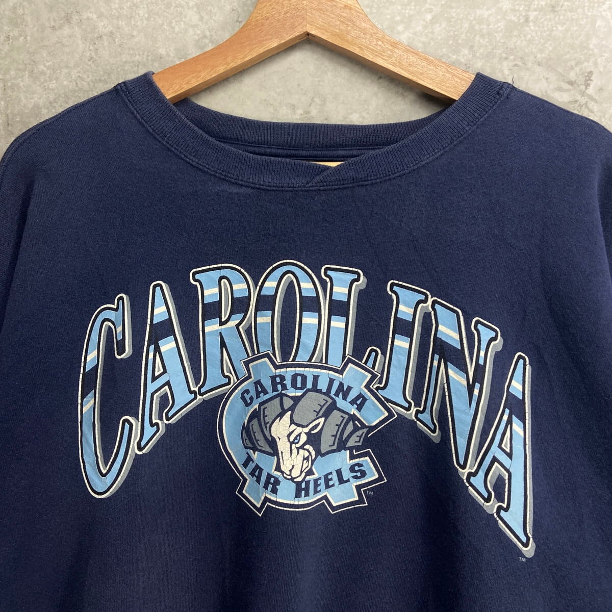 90年代 USA製 CAROLINA TAR HEELS カレッジプリント スウェットシャツ メンズ3XL相当 古着 90s VINTAGE ヴィンテージ カロライナ大学 トレーナー 紺色【スウェット】/ネイビー