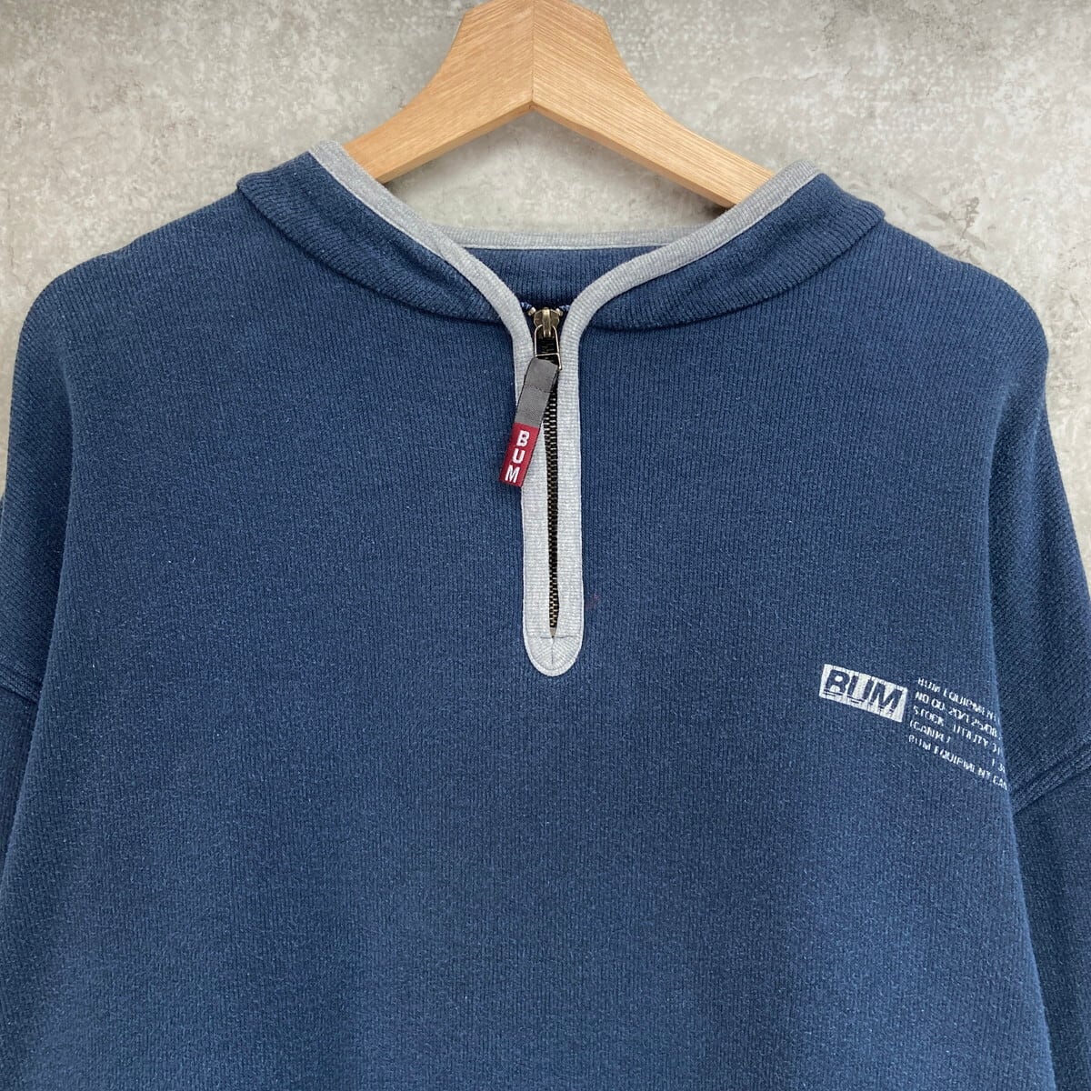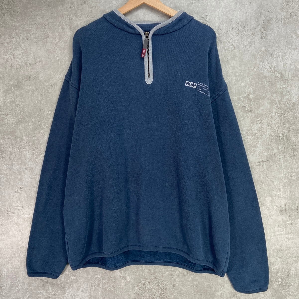 B.U.M EQUIPMENT ワンポイントロゴプリント ハーフジップ スウェットシャツ メンズXL相当 古着 アメカジ トレーナー 紺色【スウェット】/ネイビー
