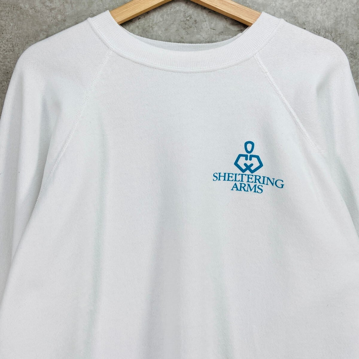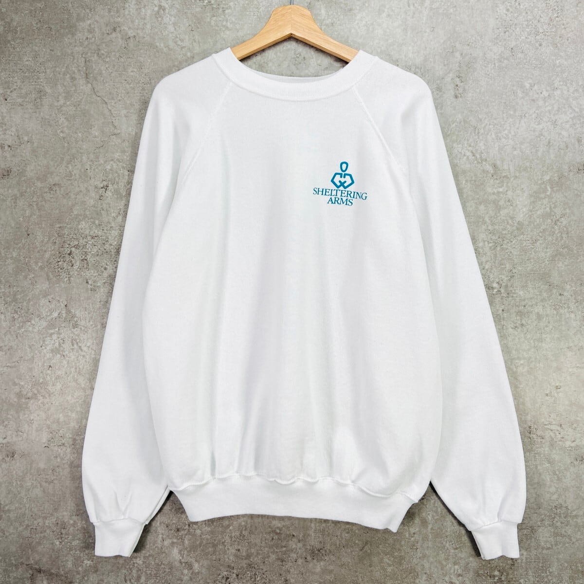 80年代 SHELTERING ARMS 企業ロゴプリント メンズL相当 古着 80s VINTAGE ヴィンテージ ラグランスリーブ トレーナー 白色【スウェット】/ホワイト