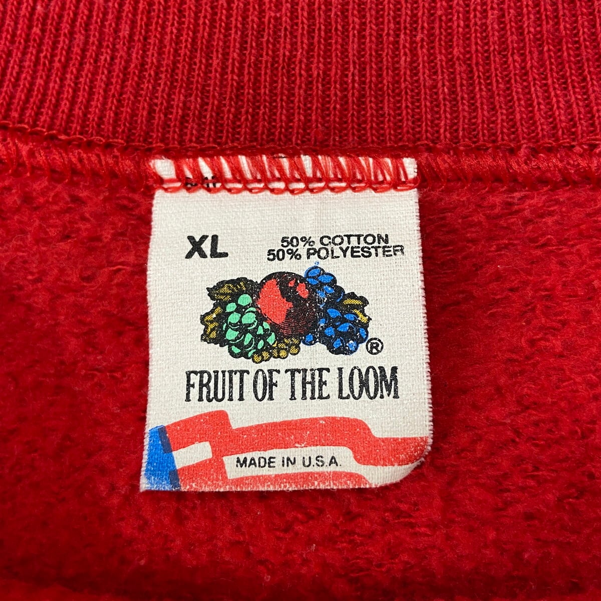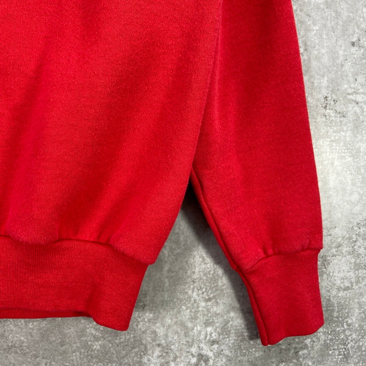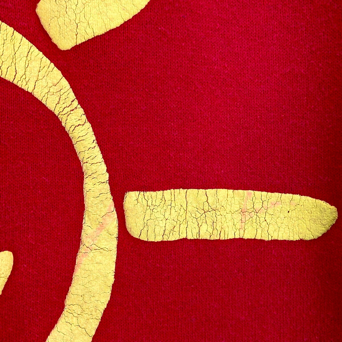 80~90年代 USA製 Don't Worry Be Happy メッセージ発砲プリント スウェットシャツ メンズL相当 古着 80s 90s VINTAGE ヴィンテージ ラグランスリーブ トレーナー 太陽 赤色【スウェット】/レッド