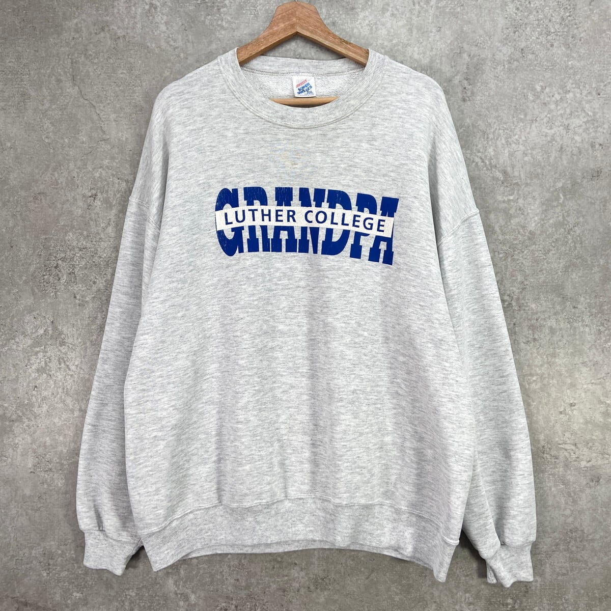 80~90年代 USA製 LUTHER COLLEGE カレッジプリント スウェットシャツ メンズXL相当 古着 80s 90s VINTAGE ヴィンテージ アメカジ ルーサー大学 トレーナー ライトグレー 杢グレー【スウェット】/グレー
