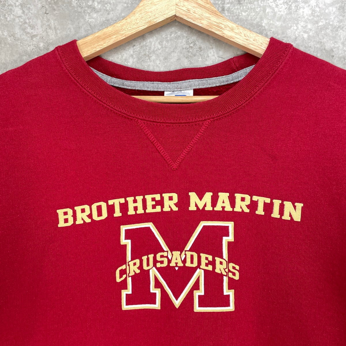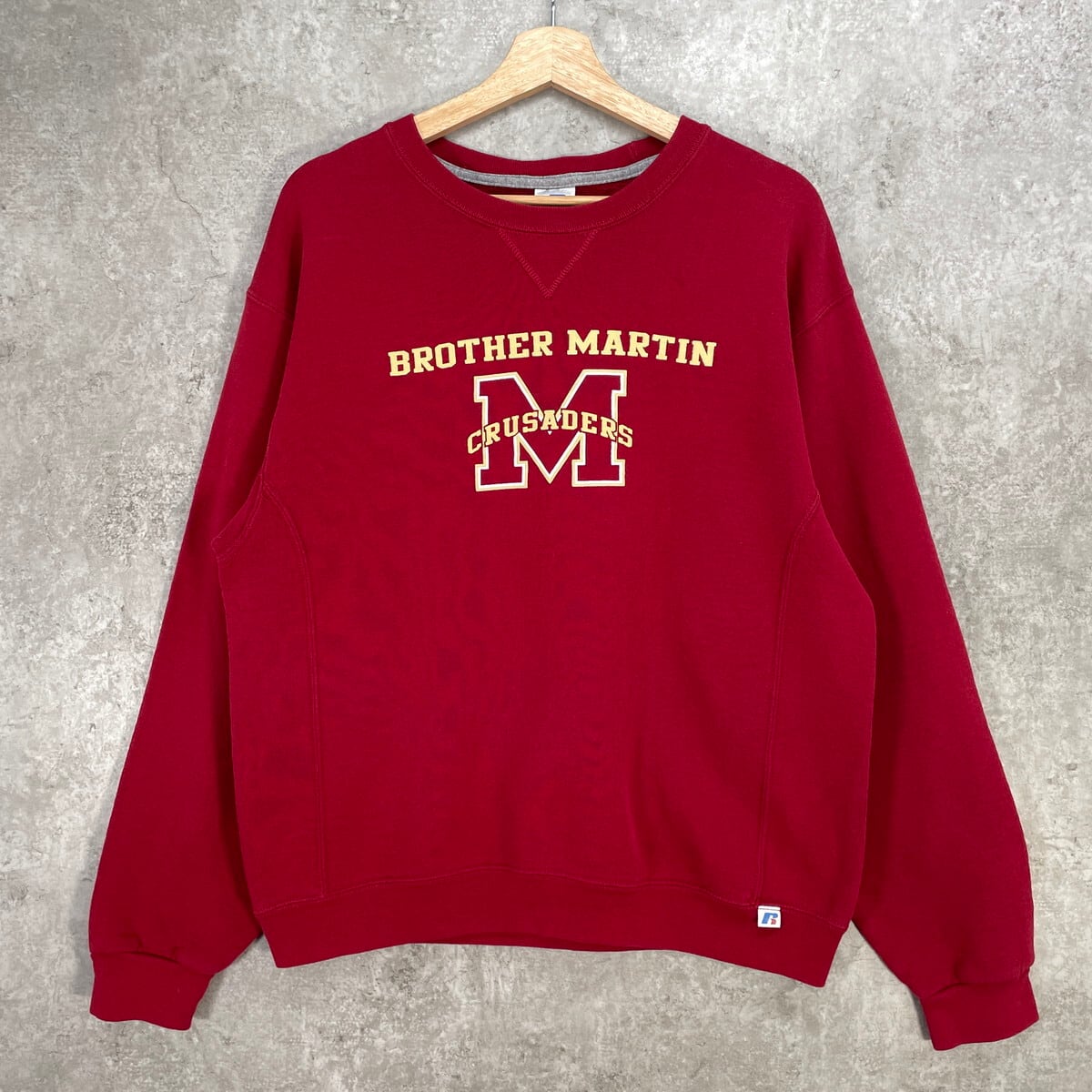 00年代 RUSSELL ATHLETIC カレッジプリント リバースタイプ スウェットシャツ メンズM 古着 00s Y2K ヴィンテージ VINTAGE BROTHER MARTIN CRUSADERS ラッセルアスレチック 前Vガゼット アメカジ トレーナー 赤色【スウェット】/レッド