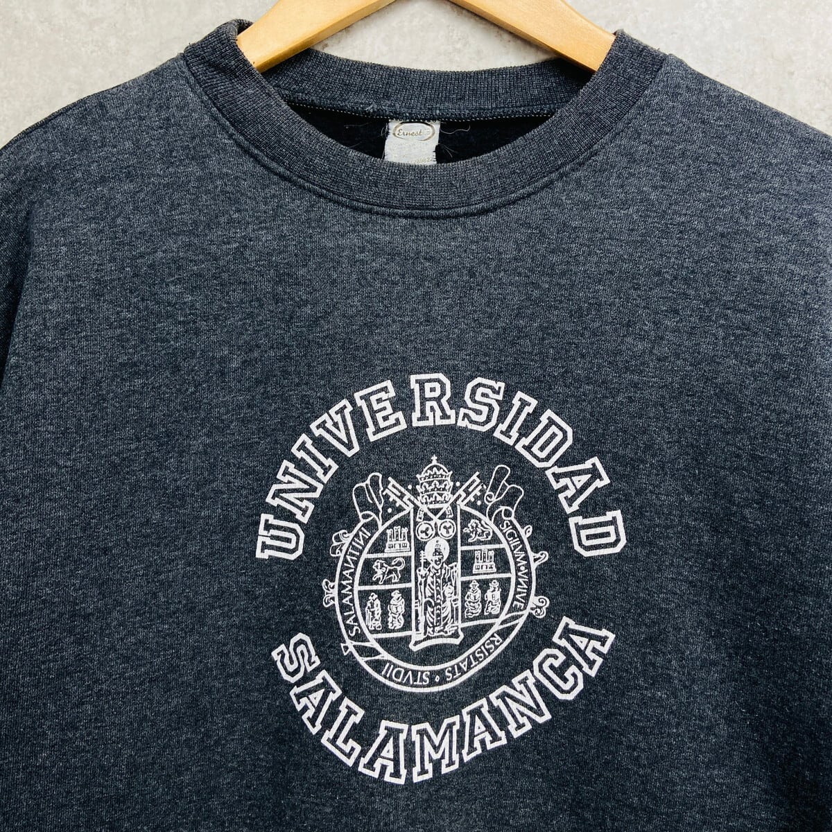 ■UNIVARSIDAD SALAMANCA カレッジプリント スウェットシャツ メンズL相当 古着 アメカジ サラマンカ大学 トレーナー チャコールグレー【スウェット】/グレー