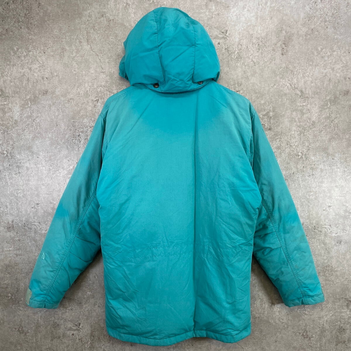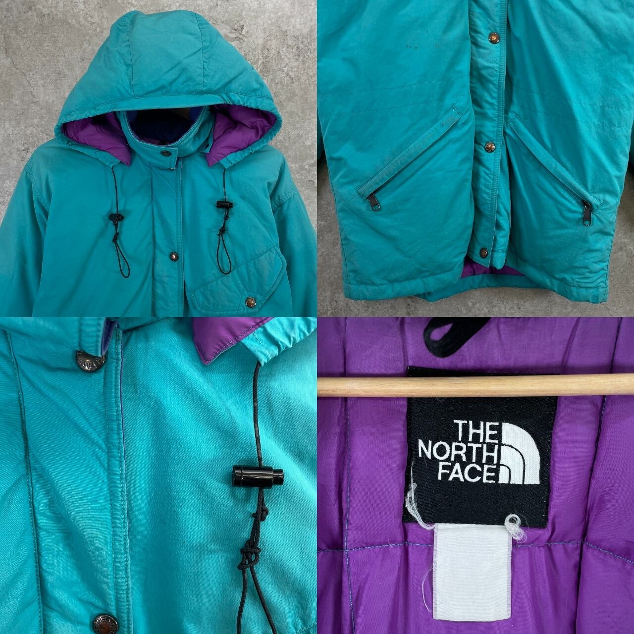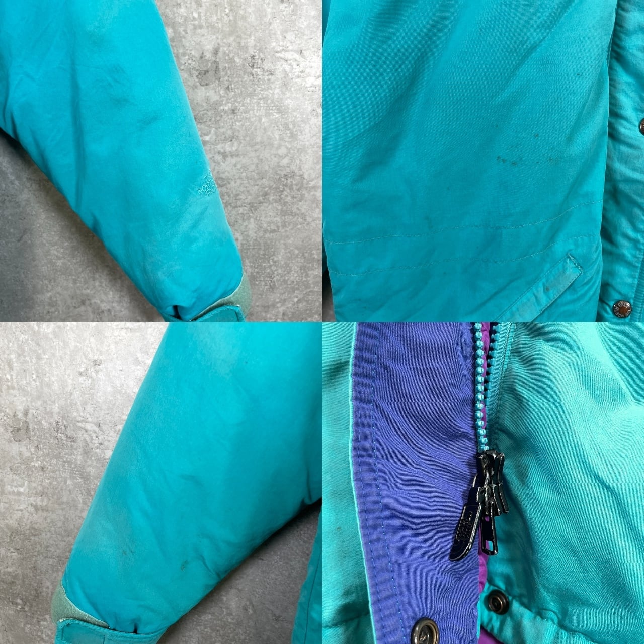 90年代 THE NORTH FACE ザ ノースフェイス ダウンジャケット レディースL相当 古着 90s ヴィンテージ VINTAGE フード着脱式 ターコイズブルー パープル【アウトドアジャケット】/ライトブルー