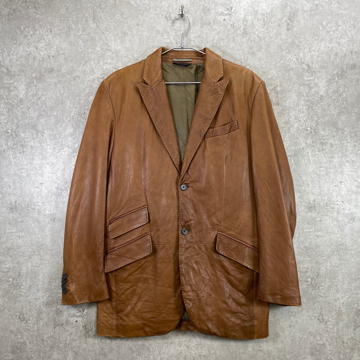 ■BANANA REPUBLIC バナナリパブリック レザー テーラードジャケット メンズXL相当 古着 バナリパ キャメルブラウン 茶色【レザージャケット】/ブラウン
