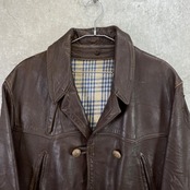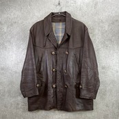 50〜60年代 フランス レザー マッキノーコート メンズXL相当 古着 50s 60s VINTAGE ヴィンテージ コの字留め カーコート ユーロ 茶色【レザージャケット】/ブラウン
