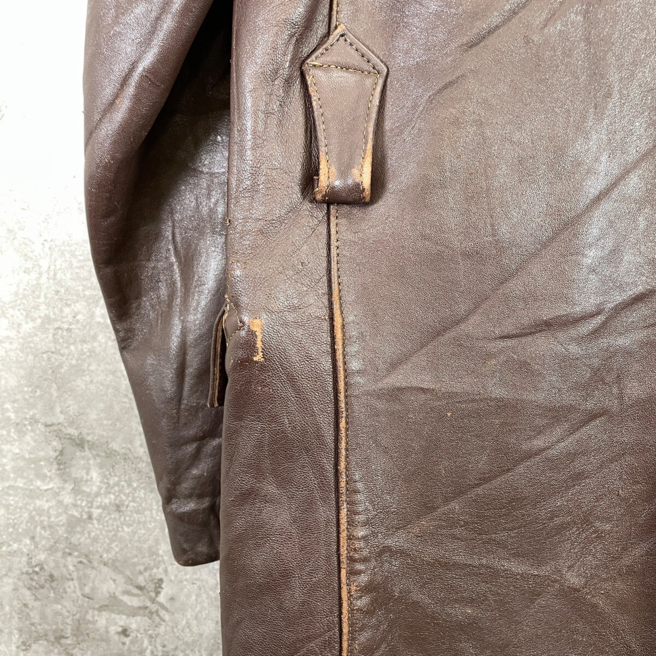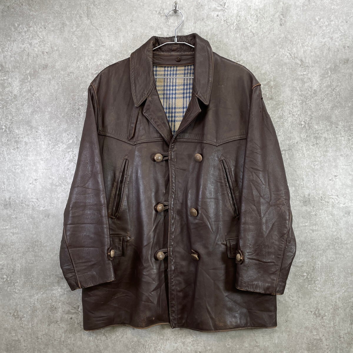 ■50〜60年代 フランス レザー マッキノーコート メンズXL相当 古着 50s 60s VINTAGE ヴィンテージ コの字留め カーコート ユーロ 茶色【レザージャケット】/ブラウン