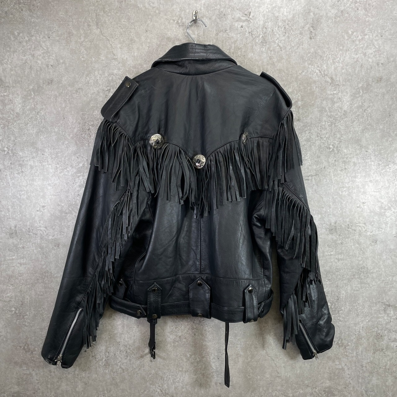 90年代 SYLMAN フリンジ ライダースジャケット メンズXL相当 古着 90s VINTAGE ヴィンテージ 革ジャン コンチョ ウエスタン ユーロ 黒【レザージャケット】/ブラック
