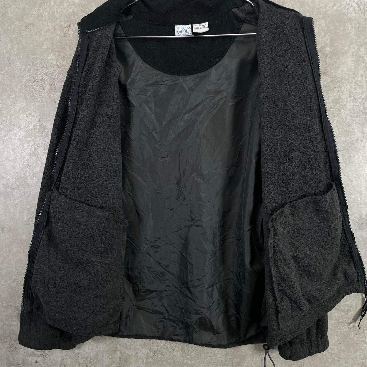 90年代~ ALASKA トーテムポール刺繍 フリースジャケット メンズXL相当 古着 90s VINTAGE ヴィンテージ アラスカ ドローコード付き 黒色【フリースジャケット】/ブラック