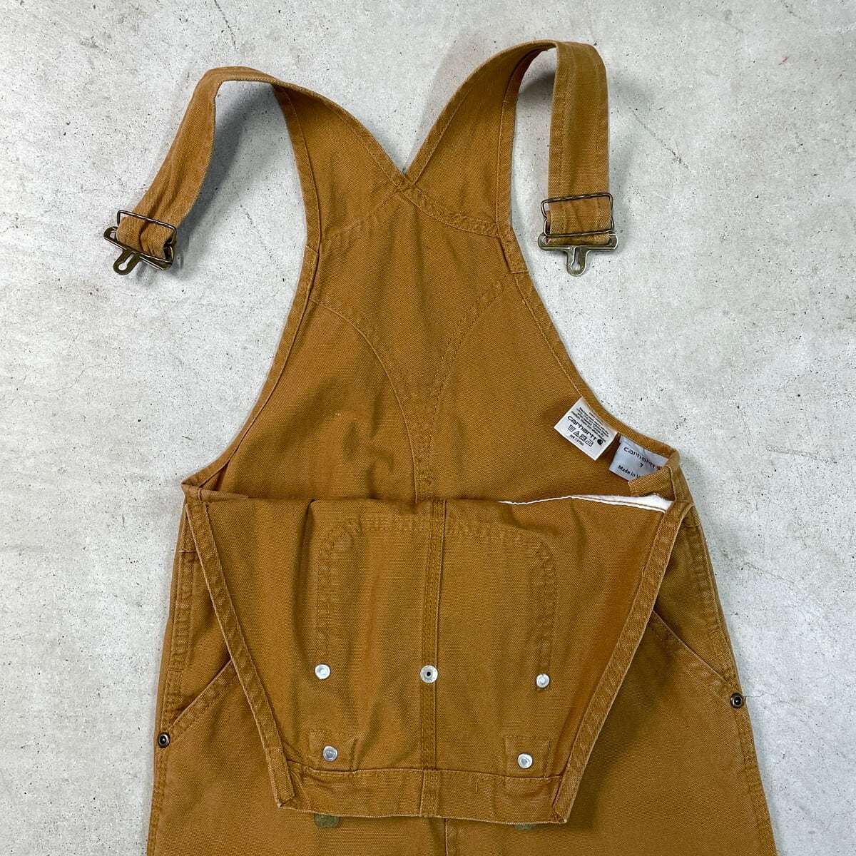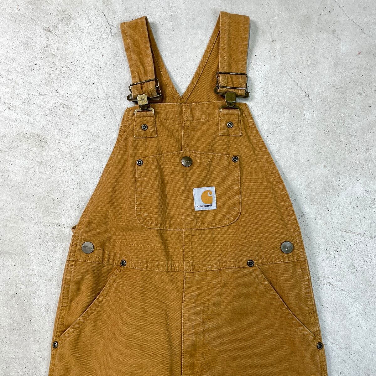 ■【Kids】Carhartt カーハート ダック地 オーバーオール キッズ 7歳用 古着 アメカジ 子供服 ライトブラウン 茶色 【オーバーオール】/ブラウン