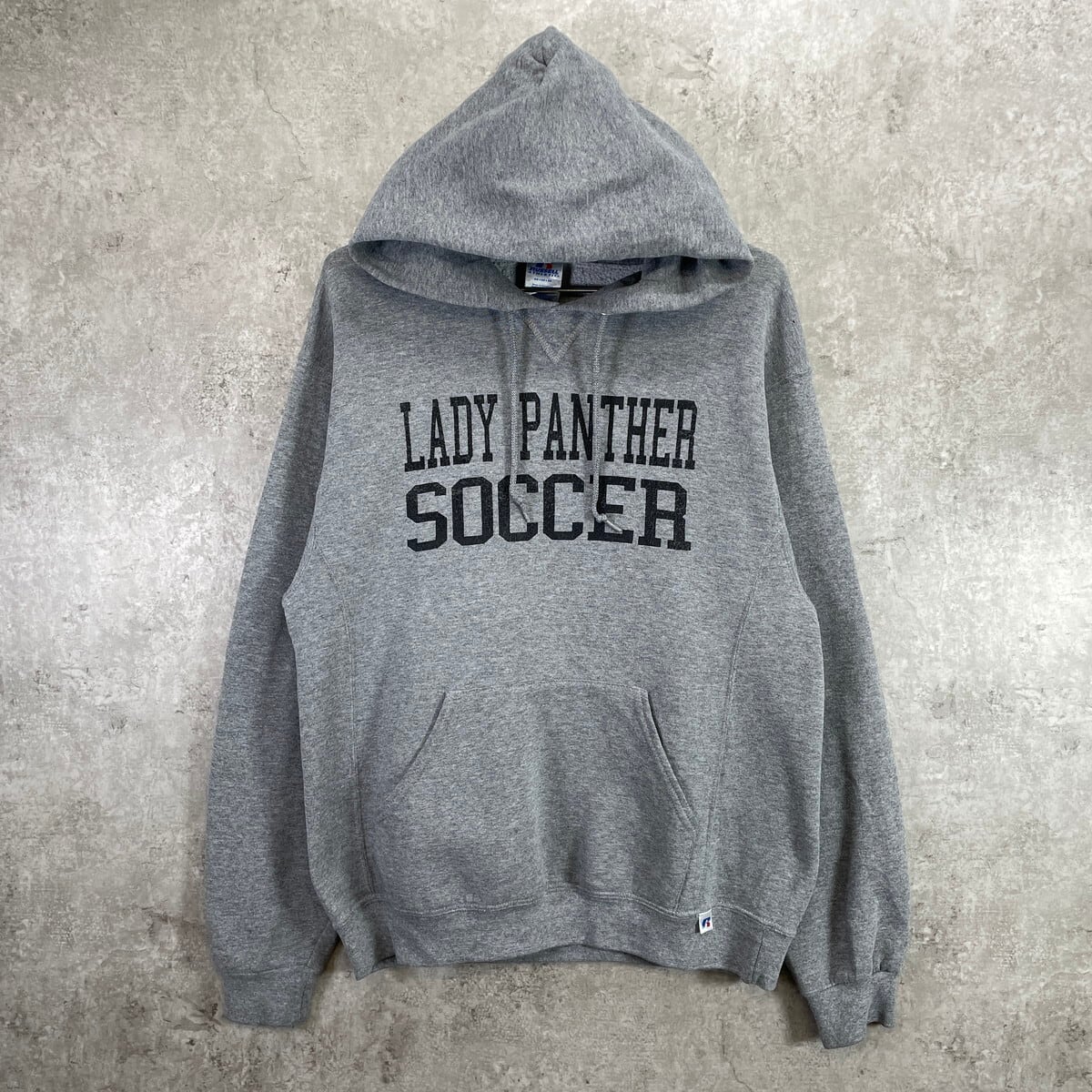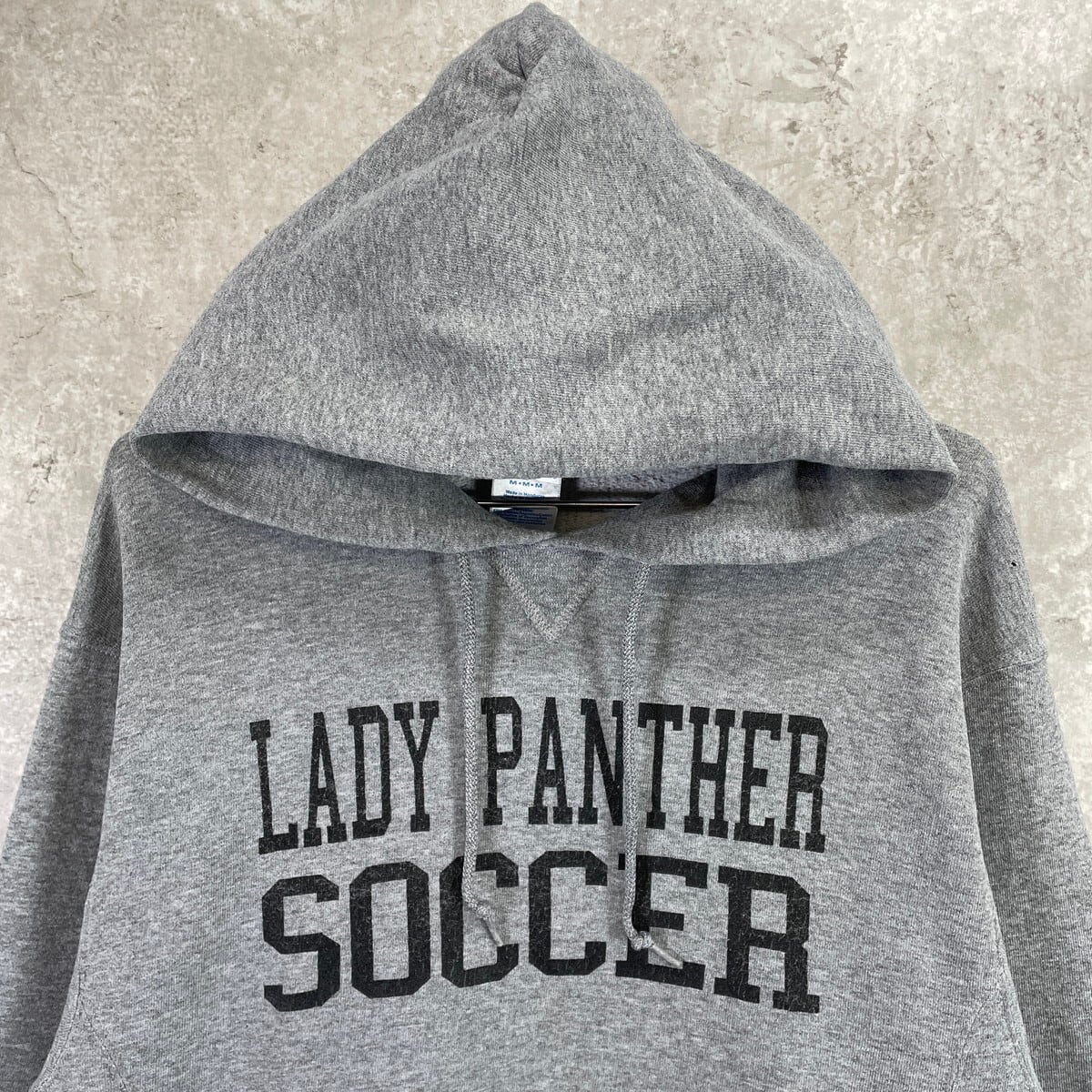 00年代 RUSSELL ATHLETIC ラッセル サッカーチームプリント リバースタイプ スウェットパーカー メンズM 古着 00s Y2K VINTAGE ヴィンテージ LADY PANTHER SOCCER プルオーバーパーカー フーディー 灰色【パーカー】/グレー【US-30】
