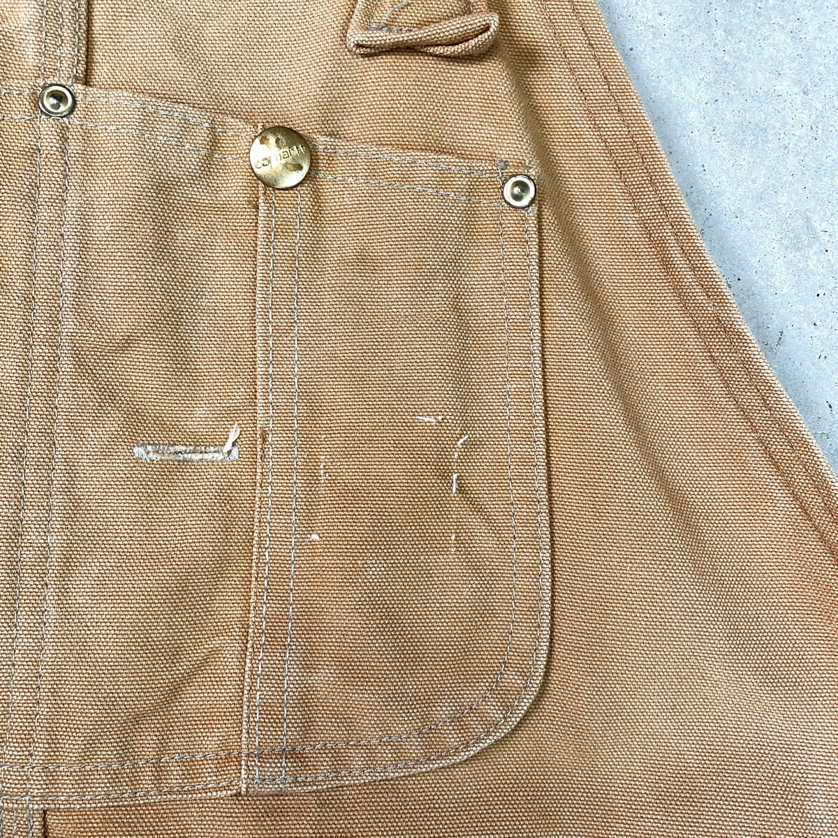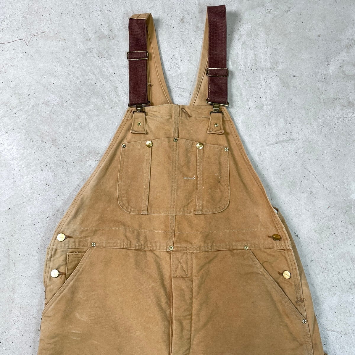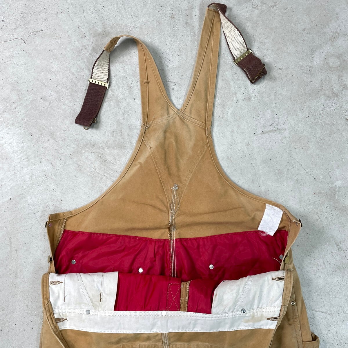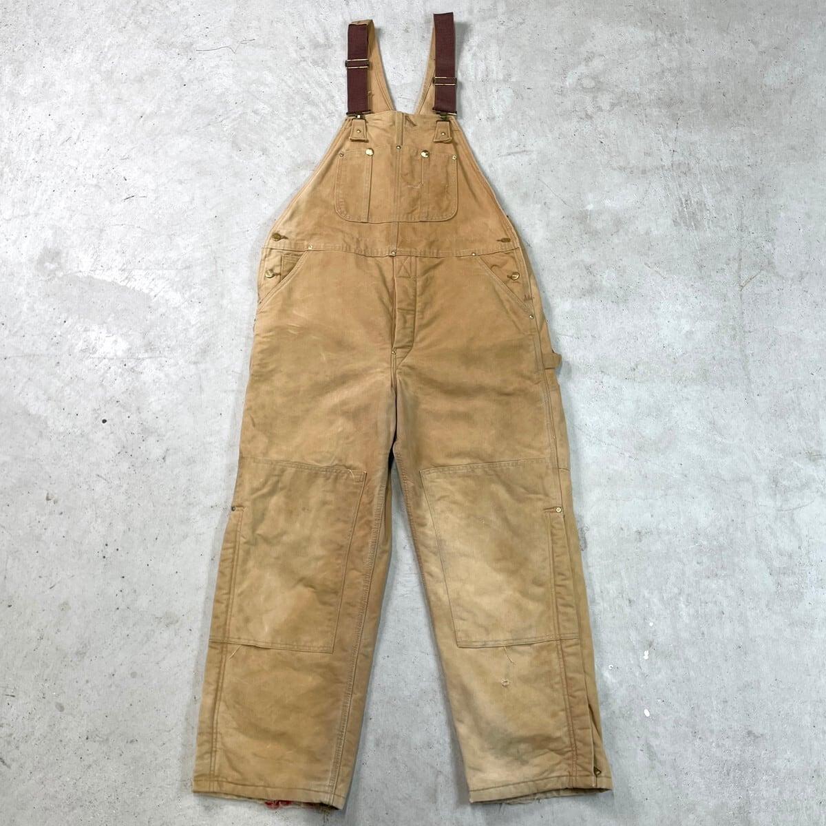 80-90年代 Carhartt カーハート ダック地 ダブルニー オーバーオール メンズW39相当 古着 80s VINTAGE ヴィンテージ キルティングライナー ボタンフライ キャメルブラウン【オーバーオール】/ベージュ