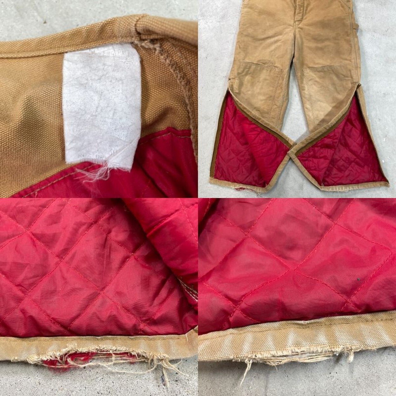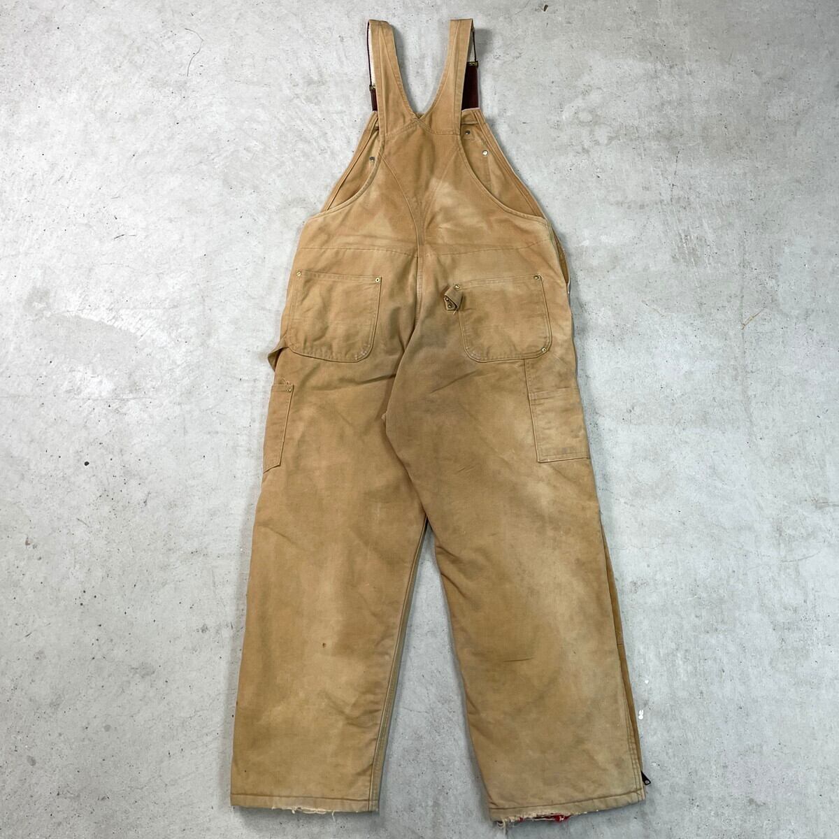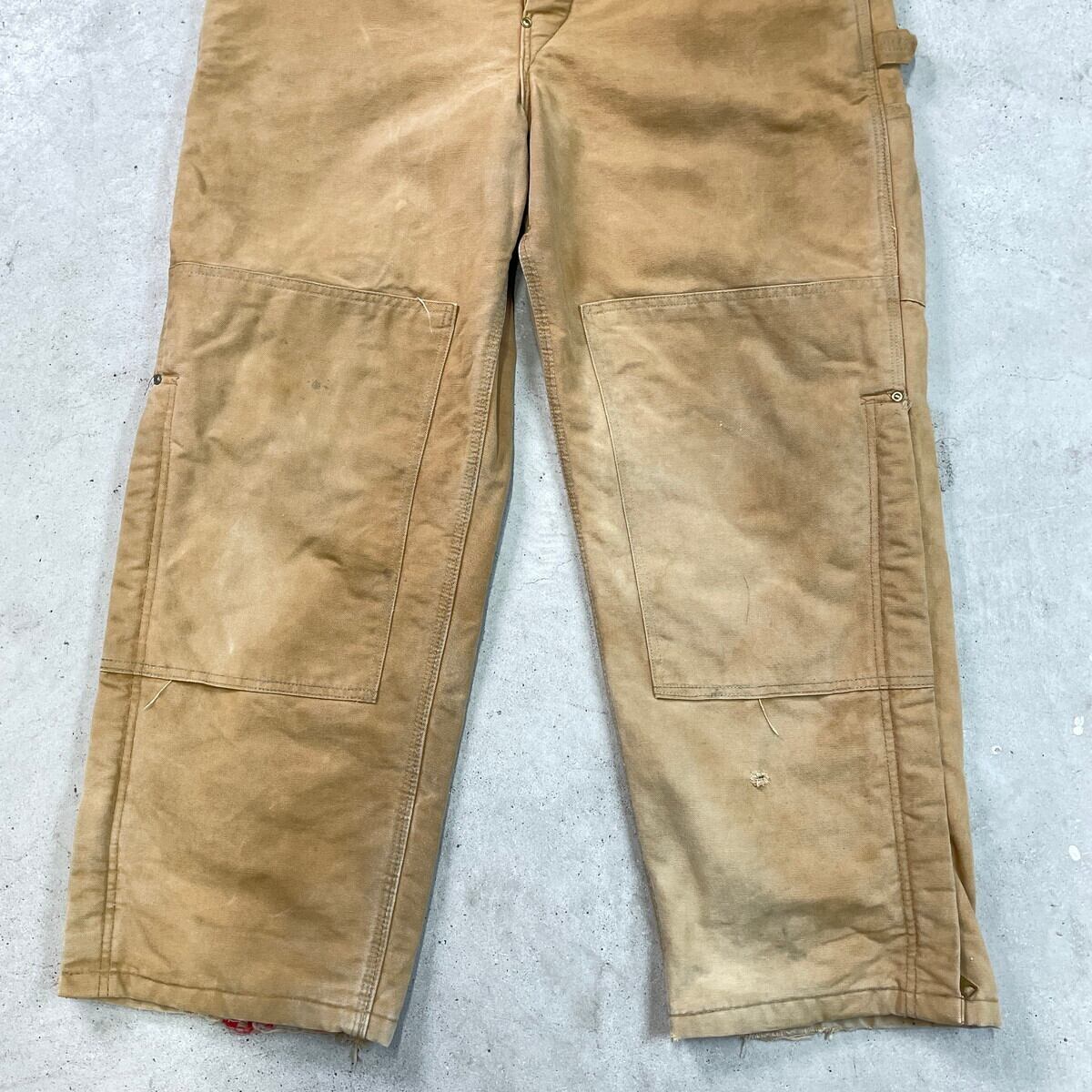 ■80-90年代 Carhartt カーハート ダック地 ダブルニー オーバーオール メンズW39相当 古着 80s VINTAGE ヴィンテージ キルティングライナー ボタンフライ キャメルブラウン【オーバーオール】/ベージュ