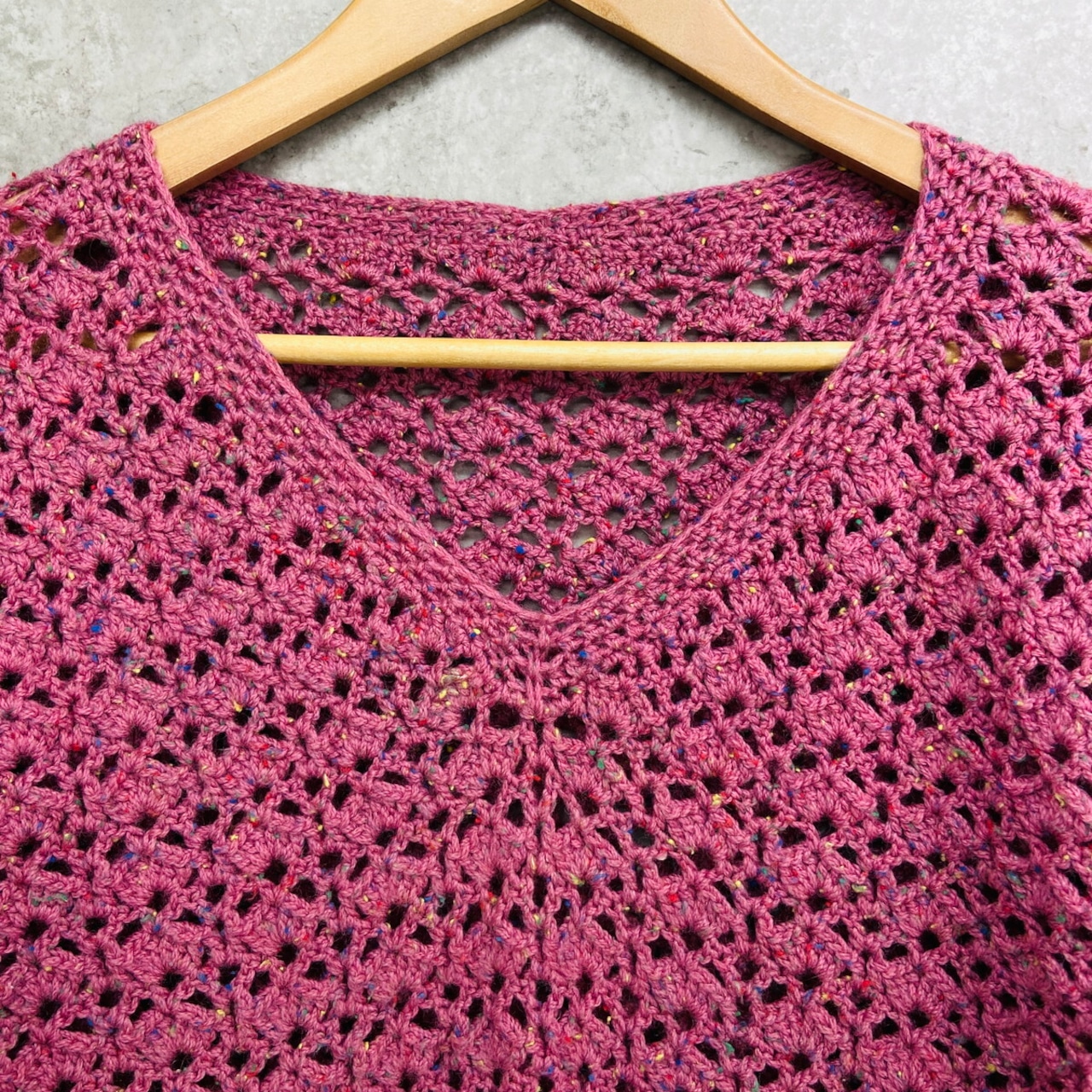 ヴィンテージ マルチカラーネップ クロシェ ニットセーター レディースS~M相当 古着 VINTAGE デザインニット【ニットセーター】/ピンク