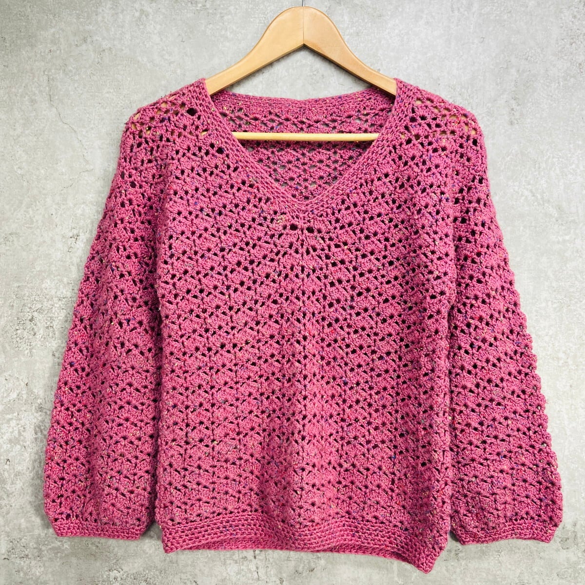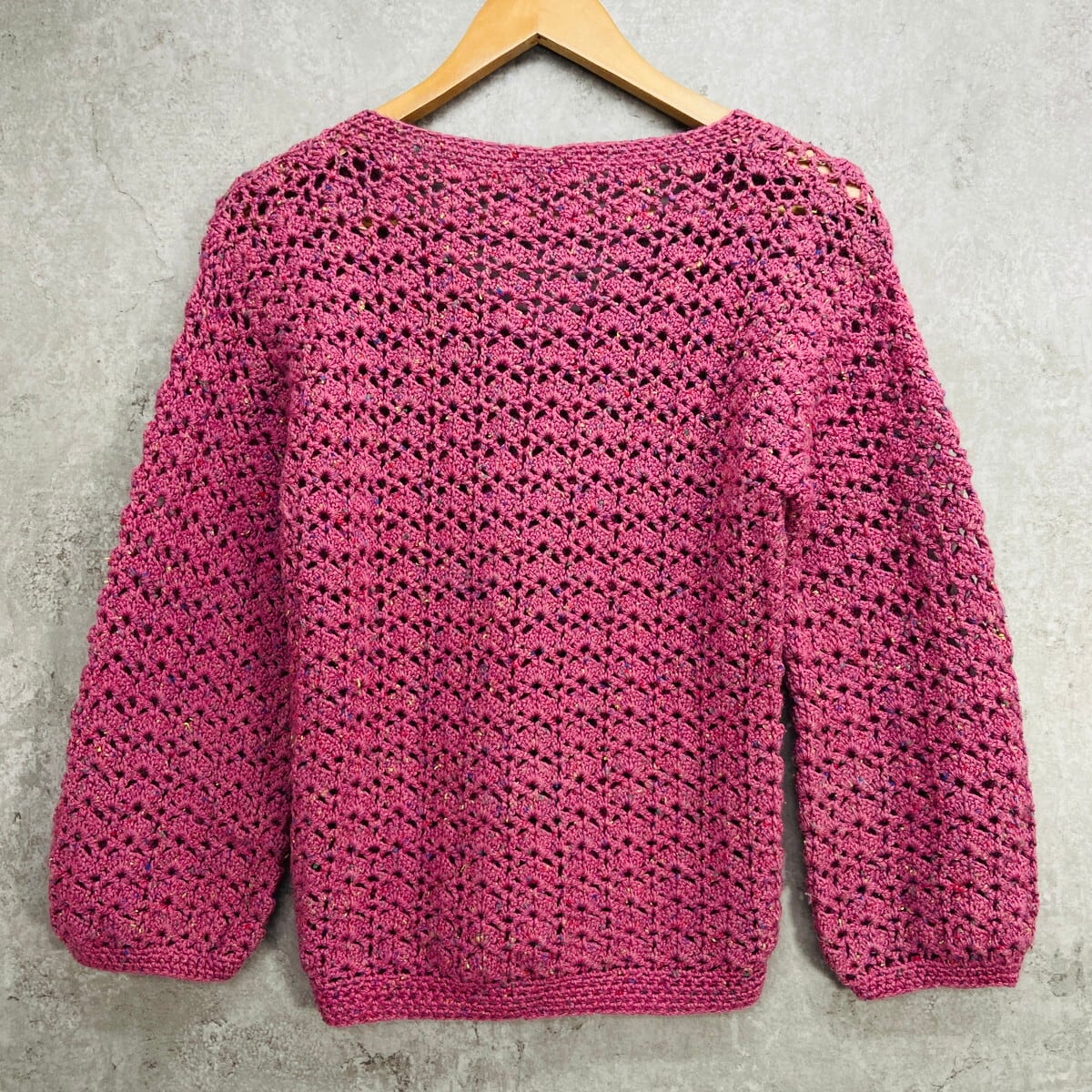 ■ヴィンテージ マルチカラーネップ クロシェ ニットセーター レディースS~M相当 古着 VINTAGE デザインニット【ニットセーター】/ピンク